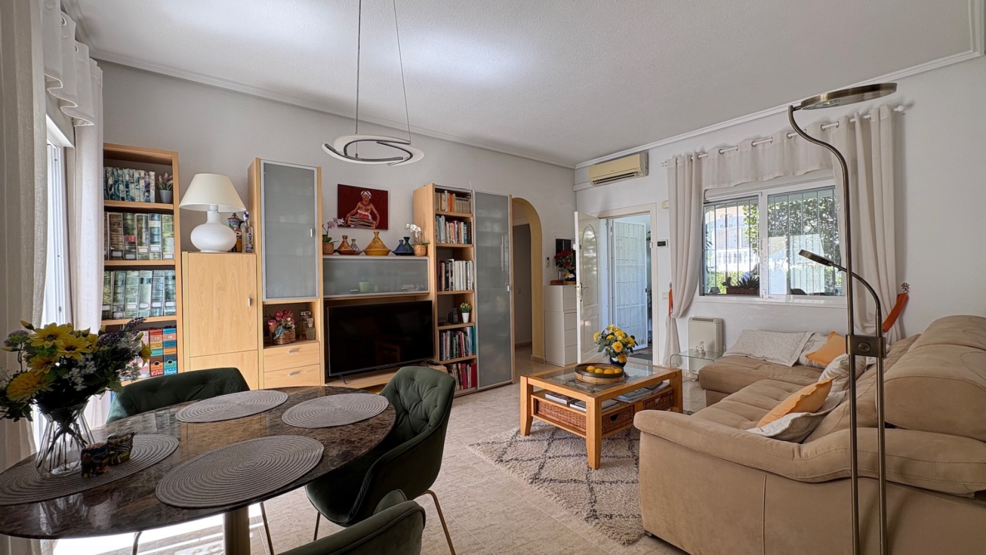 Privatbostad "Conjunto Romeo" Upptäck detta charmiga enplanshus beläget i det prestigefyllda området Plaza la Fiesta i Ciudad Quesada (Rojales). Beläget i det exklusiva gated community Conjunto Romeo, erbjuder denna fastighet en lugn, säker och familjevänlig miljö. Tomten sträcker sig över 220 m², med 85 m² byggd yta utformad på ett plan för maximal bekvämlighet. Huset har en elegant inglasad veranda på 17 m², perfekt för året runt-njutning, och en fantastisk privat trädgård på 135 m² fylld med vackra träd och häckar, komplett med en grillplats och en mysig uteservering perfekt för sammankomster. På taket hittar du ett 20 m² privat solarium, perfekt för att koppla av under medelhavssolen eller njuta av fri utsikt. I källaren finns ett rymligt förråd som perfekt kompletterar huset för längre vistelser eller året runt-boende. Detta hem är fullt möblerat och utrustat med vitvaror, redo att inflyttas. Det inkluderar luftkonditionering för komfort året runt och ett praktiskt förråd i källaren, perfekt för att hålla alla dina tillhörigheter organiserade. En annan höjdpunkt är närheten till den gemensamma poolen, som delas av endast ett fåtal grannar, vilket garanterar avskildhet och utmärkt underhåll. Plaza la Fiesta i Ciudad Quesada är ett mycket eftertraktat område tack vare sitt utmärkta läge. Bara några steg bort hittar du stormarknader, restauranger, apotek, en vårdcentral, banker och grönområden. Dessutom är det bara en kort bilresa från Guardamars stränder, La Marquesa golfbana och erbjuder enkel tillgång till Alicante och Torrevieja. Denna fastighet är en unik möjlighet, oavsett om det är för året runt-boende, ett fritidshus eller en investering i ett område med hög efterfrågan. Kontakta oss för mer information eller för att boka en visning utan förpliktelser!