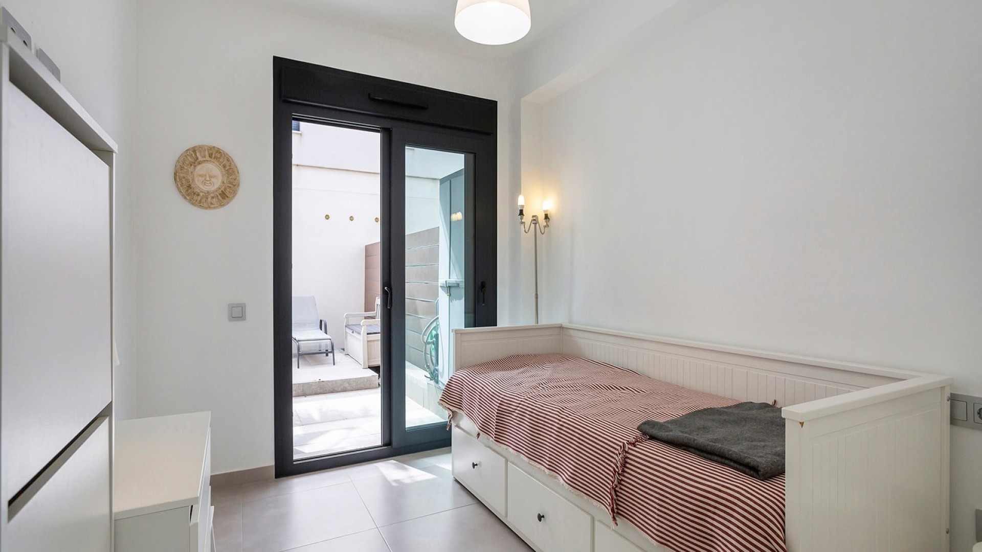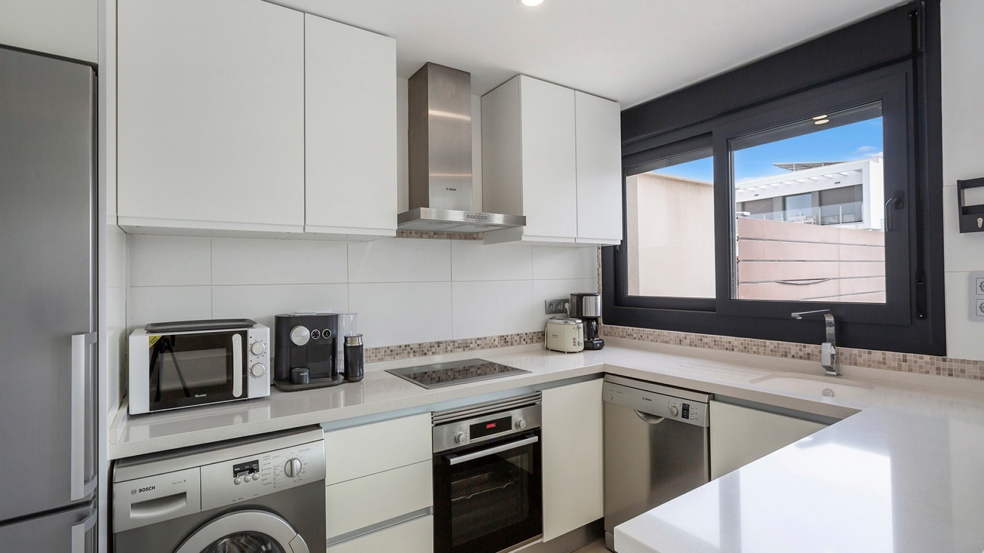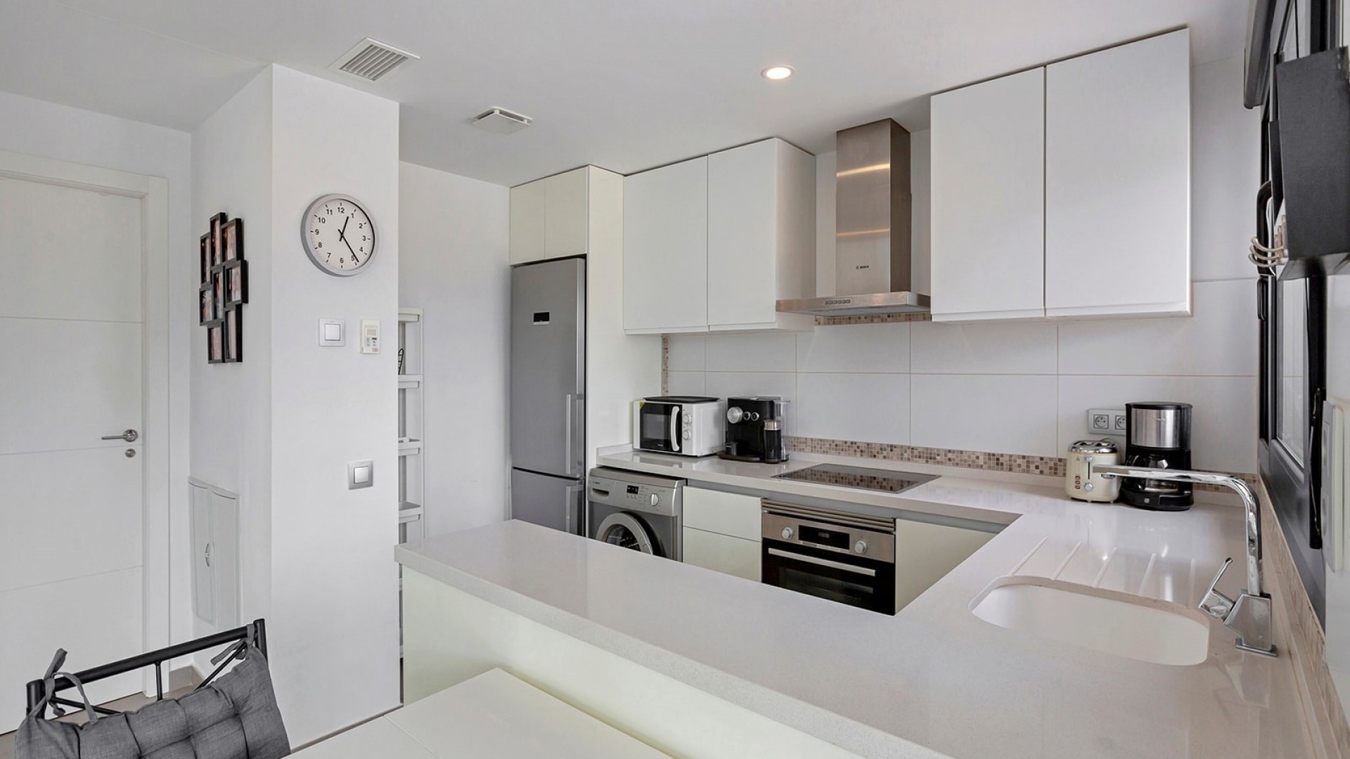 Deze luxueuze, moderne en volledig instapklare villa in Vistabella Golf heeft 3 ruime slaapkamers en 2 moderne badkamers met inloopdouches. De ruime woonkamer en alle 3 de slaapkamers hebben een rechtstreekse toegang tot terrassen. De keuken is open en ook zeer functioneel. De villa heeft een charmante tuin en een mooi privé zwembad (15m2). Het heeft een aantrekkelijke moderne inrichting en wordt volledig gemeubileerd verkocht. Ook airconditioning en de huishoudelijke apparatuur zijn bij de prijs inbegrepen. Op het domein van Vistabella Golf ligt een prachtige 18 holes golfbaan, ontworpen door de prestigieuze golfer Manuel Piñero. Er is ook een centraal gelegen supermarkt, evenals restaurants en bars, dus u vindt alles op loopafstand. Deze woonwijk tussen de sinaasappel- en citroenboomgaarden is een uitstekend gebied om van het rustige leven te genieten, terwijl u toch na een korte rit in de dynamische steden en de prachtige stranden van Torrevieja en Orihuela Costa bent (15 km). Of als u de voorkeur geeft aan een typisch Spaans dorp, kunt u een bezoek brengen aan Orihuela, dat op slechts 10 km afstand ligt.. Verder zijn er gemakkelijke verbindingen met de luchthavens van Alicante en Murcia, deze liggen op respectievelijk 35 of 55 minuten met de auto. Mis deze kans niet, deze zeer goed onderhouden villa heeft alles wat u nodig heeft voor een vakantiehuis, een winterverblijf of een investering in een woning aan de Costa Blanca