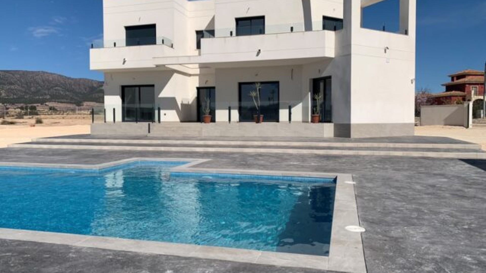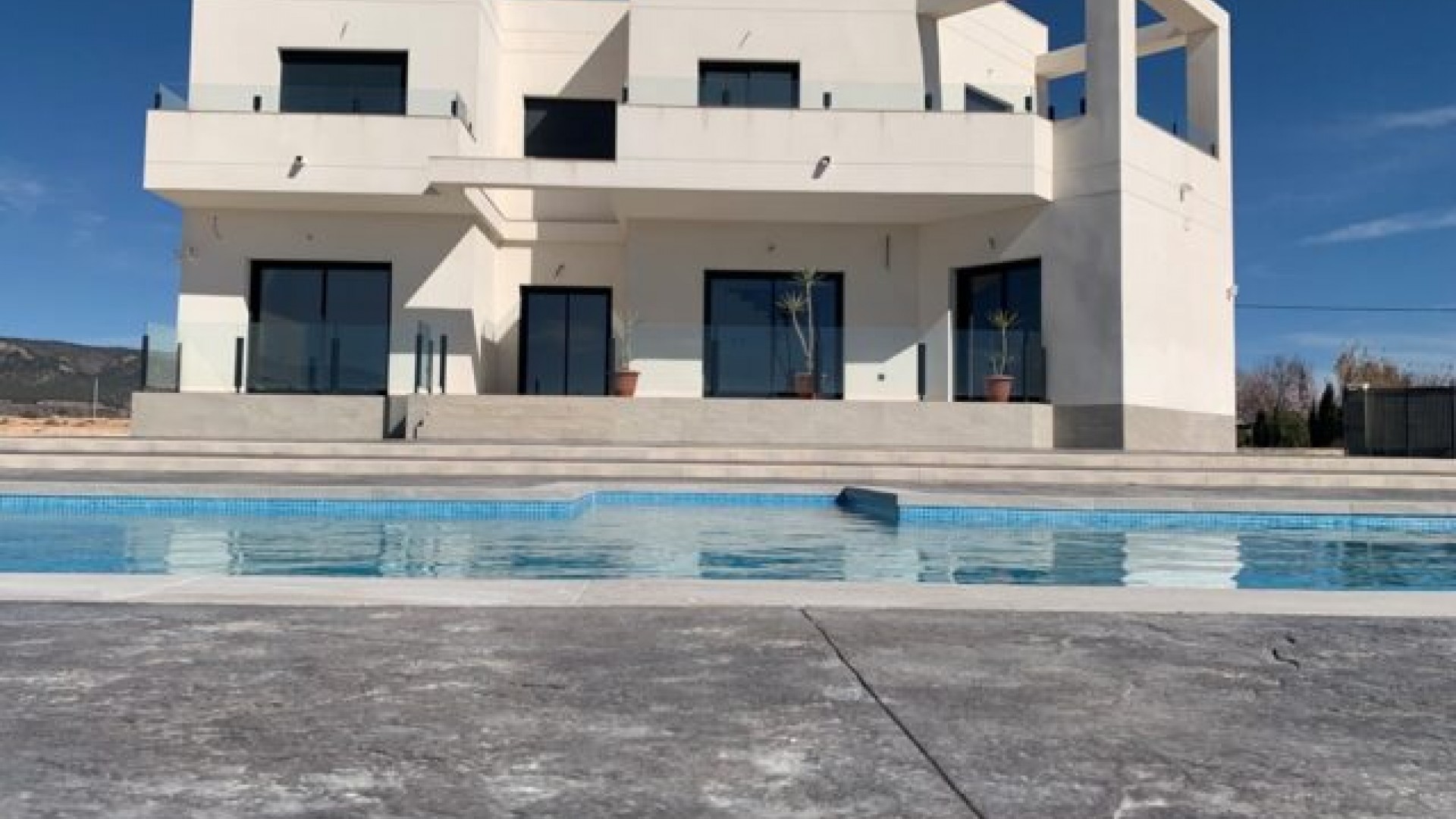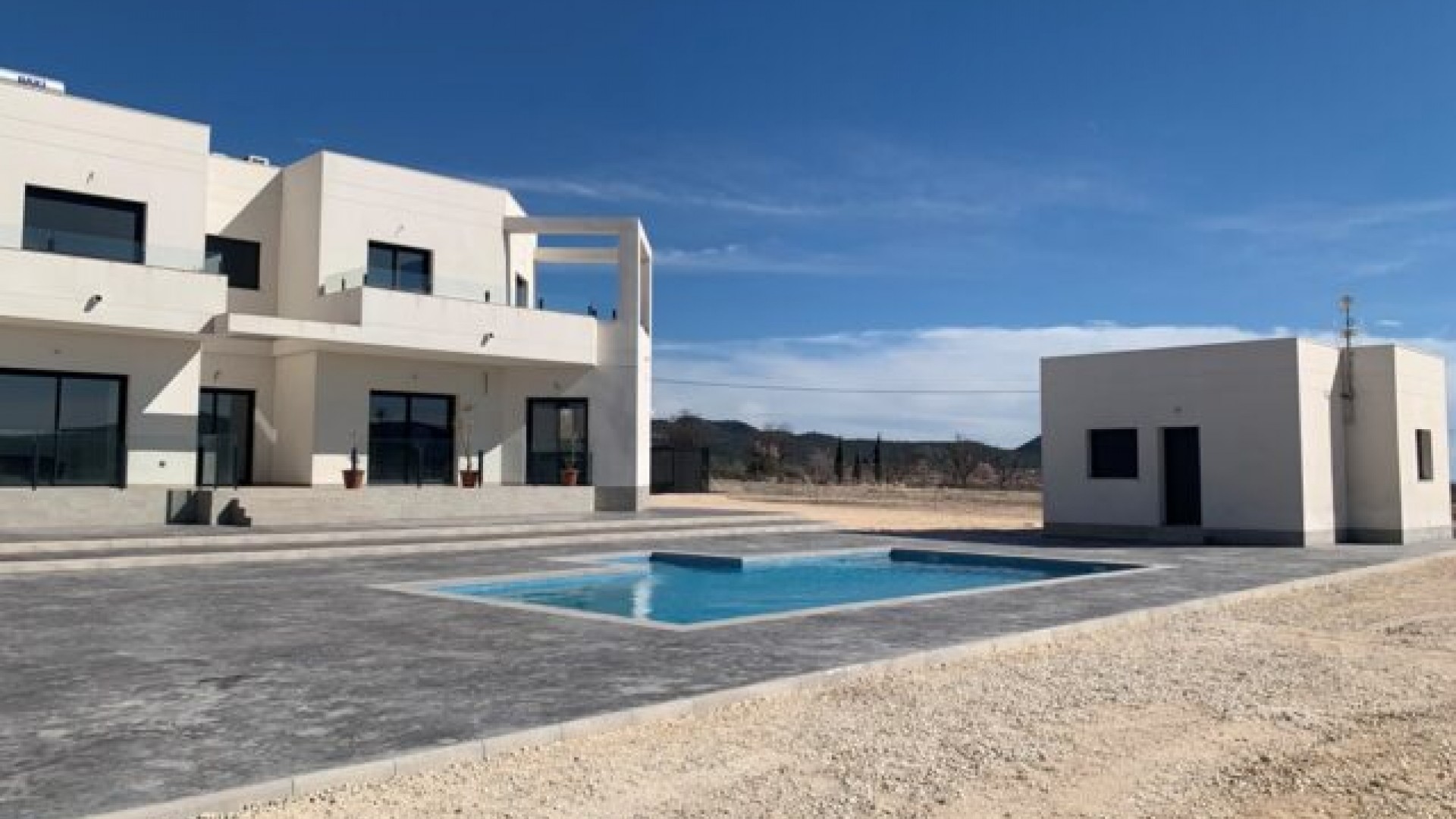 Villa in aanbouw voor levering in 4 maanden. Eengezinswoning momenteel in aanbouw voor 40%. Locatie: Ubeda in Pinoso in een van de exclusieve gebieden van topkwaliteit woningen in Pinoso. Afstand tot de stad 6-7 minuten. Drinkwater, elektriciteit, glasvezel internet beschikbaar. 25.000 m2 grond met elektriciteit aangesloten, drinkwater, verharde toegang. Perceel gelegen op een hoge positie met prachtig uitzicht. Mogelijkheid om tot 500 m2 te bouwen voor bijgebouwen, garages, magazijnen, zomerkeukens-BBQ, enz. Huis van 180 m2 gebouwd en bijgebouw van 42 m2 gebouwd Huis: Op de eerste verdieping 3 slaapkamers, 1 en-suite badkamer, 1 kleedkamer, inbouwkasten, terrassen voor elk van de kamers. Op de begane grond, een complete slaapkamer en suite, keuken met kasten en eiland met silestone aanrechtbladen, gootsteen, afzuigkap, kraan, berging, toilet, grote woonkamer en overdekte veranda's. Complete badkamers met badkamermeubels, douches, glazen schermen en toiletten van het merk Roca Exterieur en porseleinen vloer trottoirs. Binnen- en buitenverlichting inbegrepen in de prijs. Elektrische jaloezieknoppen op alle ramen. Alarm- en CCTV-pre-installatie Zwembad van 8x4 meter met 2 meter omtrek terrassen van porseleinen vloer. De klant kan alle binnenvloermaterialen, tegels, badkamermeubels, keukenmeubels, silestone kiezen aanrechtbladen.4000 m2 omheind, elektrische poort met motor inbegrepen.Inclusief airconditioning in het hele huis en het bijgebouw.Bijgebouw: Met 2 tweepersoonsslaapkamers, familiebadkamer, open woonkamer met keuken en meubilair inbegrepen in de prijs, elektrische knoppen op alle ramen.Gegarandeerde levertijd: 4 maanden.Prijs: 458.000 euroModelhuis beschikbaar voor bezichtigingen en om de kwaliteiten te controleren.