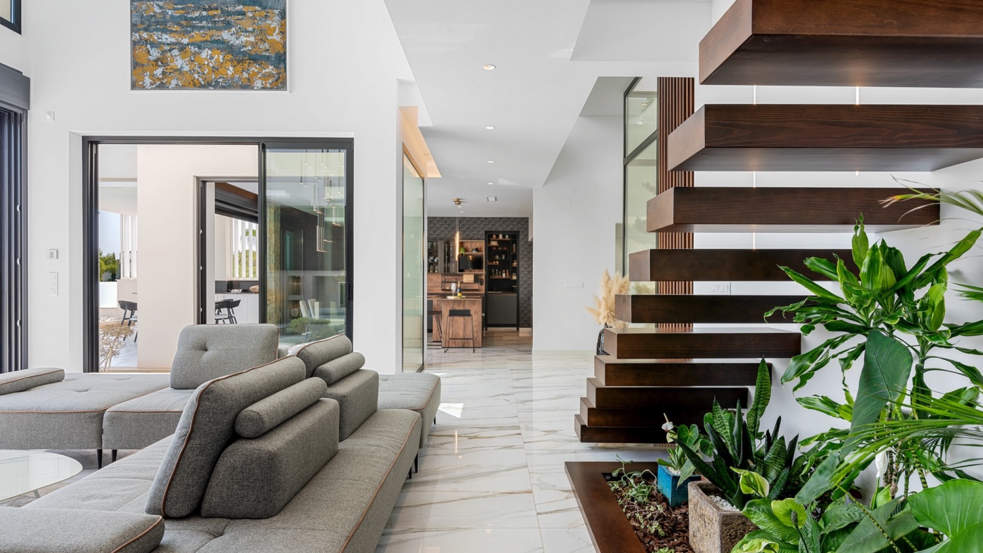 Welkom in een van onze meest prestigieuze villa's, een uniek pand in de prestigieuze gemeenschap van Las Colinas. Als u de villa nadert, opent de grote entree zich naar de prachtig onderhouden tuin, wat de perfecte introductie biedt tot de elegantie die zich daarbinnen bevindt. De villa is toegankelijk via een ruime oprit en bij binnenkomst wordt u begroet door een indrukwekkende hal die de toon zet voor de hele residentie. Het opvallende middelpunt trekt meteen de aandacht: een prachtige bonsaiboom, zorgvuldig geplaatst in een rustige tuin die sereniteit uitstraalt. De begane grond is een meesterwerk van verfijning, met luxe marmeren vloeren die een gevoel van grandeur geven. Het zorgvuldig geselecteerde interieur combineert moderne elegantie met tijdloze verfijning, waardoor een uitnodigende en exclusieve ruimte ontstaat. Elke vierkante centimeter van deze villa is ontworpen met veel aandacht voor detail om een werkelijk unieke woonervaring te bieden. Een van de meest opvallende kenmerken van de villa is de uitgestrekte open plattegrond, waar de keuken, eetkamer en woonkamer naadloos in elkaar overlopen. Deze ruime ruimte is ontworpen met zowel plezier als ontspanning in gedachten. Ramen van vloer tot plafond laten veel natuurlijk licht binnen, waardoor de grenzen tussen binnen en buiten vervagen. De toevoeging van een prachtig zwembad dat door de architectuur van de villa slingert, geeft het een speciaal vleugje luxe. Het resultaat is een uitzonderlijk vredige omgeving waar water, licht en ruimte harmonieus samenkomen. U moet dit gebied echt in het echt ervaren om het unieke ontwerp volledig te waarderen. Voordat u de privélift naar de bovenste verdiepingen neemt, vindt u op de begane grond een ruime tweepersoonsslaapkamer met een eigen badkamer. Deze kamer biedt een prachtig uitzicht op de prachtig aangelegde tuin en het elegante zwembadterras, wat gasten en bewoners een oase van rust biedt. De master suite op de eerste verdieping is een oase van comfort en stijl. Met een eigen en-suite badkamer, inloopkast en groot vrijstaand bad verlicht door prachtige lampen, is de master bedroom ontworpen met ultieme ontspanning in gedachten. De master bedroom heeft een eigen terras met panoramisch uitzicht op de omgeving, een ideale plek voor een kopje koffie in de ochtend of een avondreflectie. Op dit niveau is er ook toegang tot het ruime terras op het dak van de villa. U kunt hier genieten van adembenemende uitzichten, of u nu in uw eigen hot tub zit of in de zon ligt. Deze oase op het dak is ontworpen voor zowel ontspanning als gezelligheid, waardoor het de perfecte plek is om gasten te vermaken of te genieten van rustige momenten van eenzaamheid. Een prachtige glazen gang leidt naar een andere ruime slaapkamer met een en-suite badkamer en een eigen terras met een charmant uitzicht op het zwembad en de tuin eronder. Dit doordachte ontwerp zorgt ervoor dat elke slaapkamer aanvoelt als een privé-retraite in de villa. Deze prestigieuze villa in Las Colinas is werkelijk een van de meest exclusieve eigendommen ter wereld en biedt een ongeëvenaarde combinatie van luxe, privacy en hedendaags design. Met adembenemende uitzichten, uitgestrekte ruimtes en het zwembad dat een verbluffend architectonisch middelpunt vormt, is deze villa het toppunt van verfijnd leven. Wij nodigen u uit om een bezichtiging te plannen en de unieke charme en verfijning van dit buitengewone pand te ervaren.