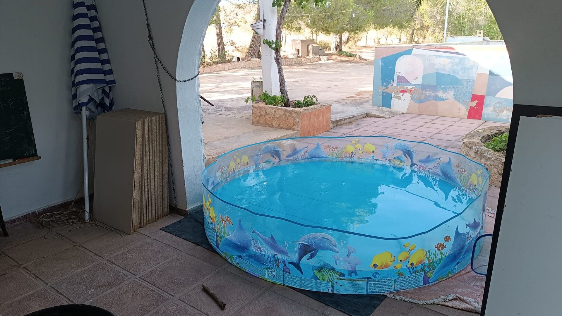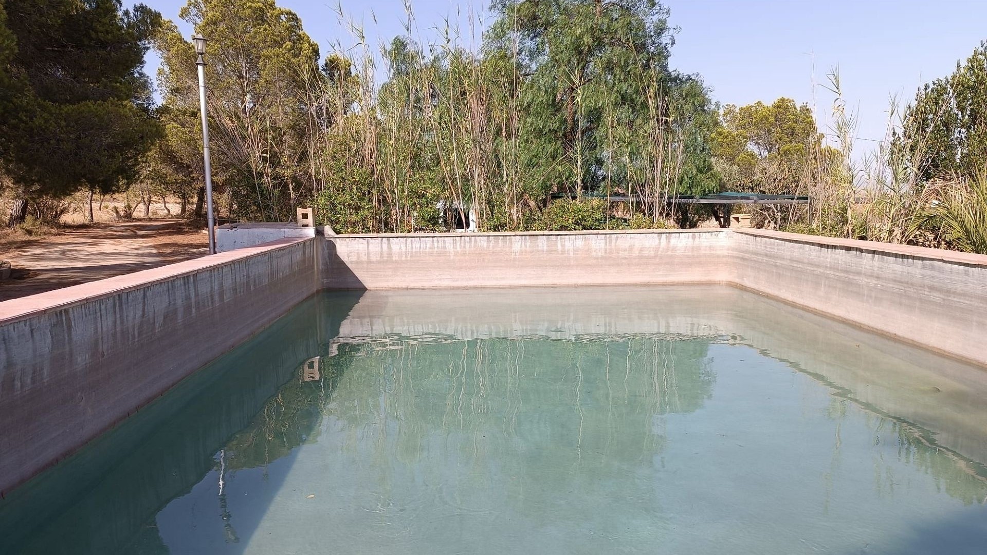 Het uitgestrekte perceel is prachtig beplant met amandelbomen, vijgenbomen, dennenbomen en diverse sierbomen, wat een rustige en natuurlijke omgeving creëert.