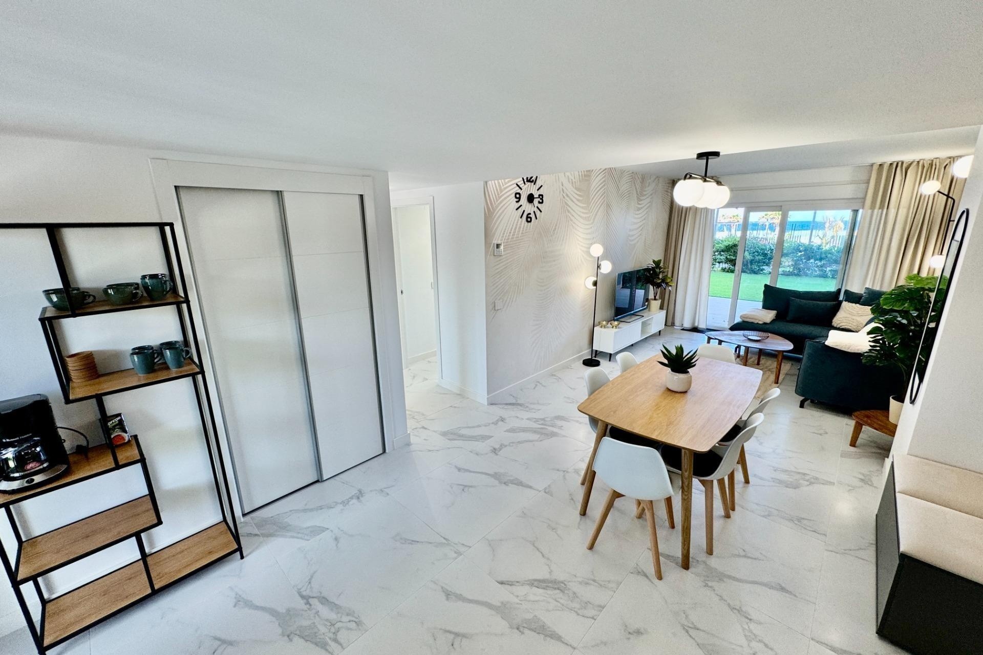 Luxe appartement aan zee met zeezicht in Punta Prima~~We presenteren deze exclusieve woning, gelegen in een van de meest prestigieuze residenties in Punta Prima, direct aan zee, met directe en privétoegang tot het strand. Een unieke kans voor wie comfort, modern design en het voorrecht van de Middellandse Zee aan zijn voeten wil combineren.~~Het appartement beschikt over twee ruime en lichte slaapkamers en twee complete badkamers, ontworpen in een moderne stijl met hoogwaardige afwerkingen die elegantie en comfort in elke kamer brengen. Een van de grote voordelen is de mogelijkheid om het balkon af te sluiten en een derde slaapkamer of kantoor te creëren, waardoor de woning kan worden aangepast aan de behoeften van elke eigenaar.~~De ruime en functionele woon-/eetkamer grenst aan een groot terras vanwaar u kunt genieten van een onovertroffen frontaal uitzicht op zee. Een perfecte plek om te ontspannen, te genieten van de zeebries of unieke momenten te delen in een bevoorrechte omgeving.~~Buiten beschikt de woning over een privétuin, ideaal om het hele jaar door te genieten van het mediterrane klimaat. Bovendien is een ondergrondse parkeerplaats bij de prijs inbegrepen, wat comfort en veiligheid garandeert. De gemeenschappelijke ruimtes van de residentie zijn ontworpen om een werkelijk luxueuze ervaring te bieden: een spectaculair infinity pool met uitzicht op zee, een verwarmd zwembad, een kinderbad en ruime tuinen die uitnodigen tot ontspanning en genot in een exclusieve omgeving. De woning is voorzien van elektrische rolluiken voor alle ramen, wat het comfort en de praktische bruikbaarheid voor dagelijks gebruik vergroot. Kortom, dit is een unieke woning, perfect als permanente woning, vakantiehuis of luxe vastgoedinvestering aan de Costa Blanca. De locatie, het ontwerp en de voorzieningen maken dit appartement een uitzonderlijke kans om de authentieke mediterrane stijl te ervaren met alle voorzieningen van een 5-sterren wooncomplex.