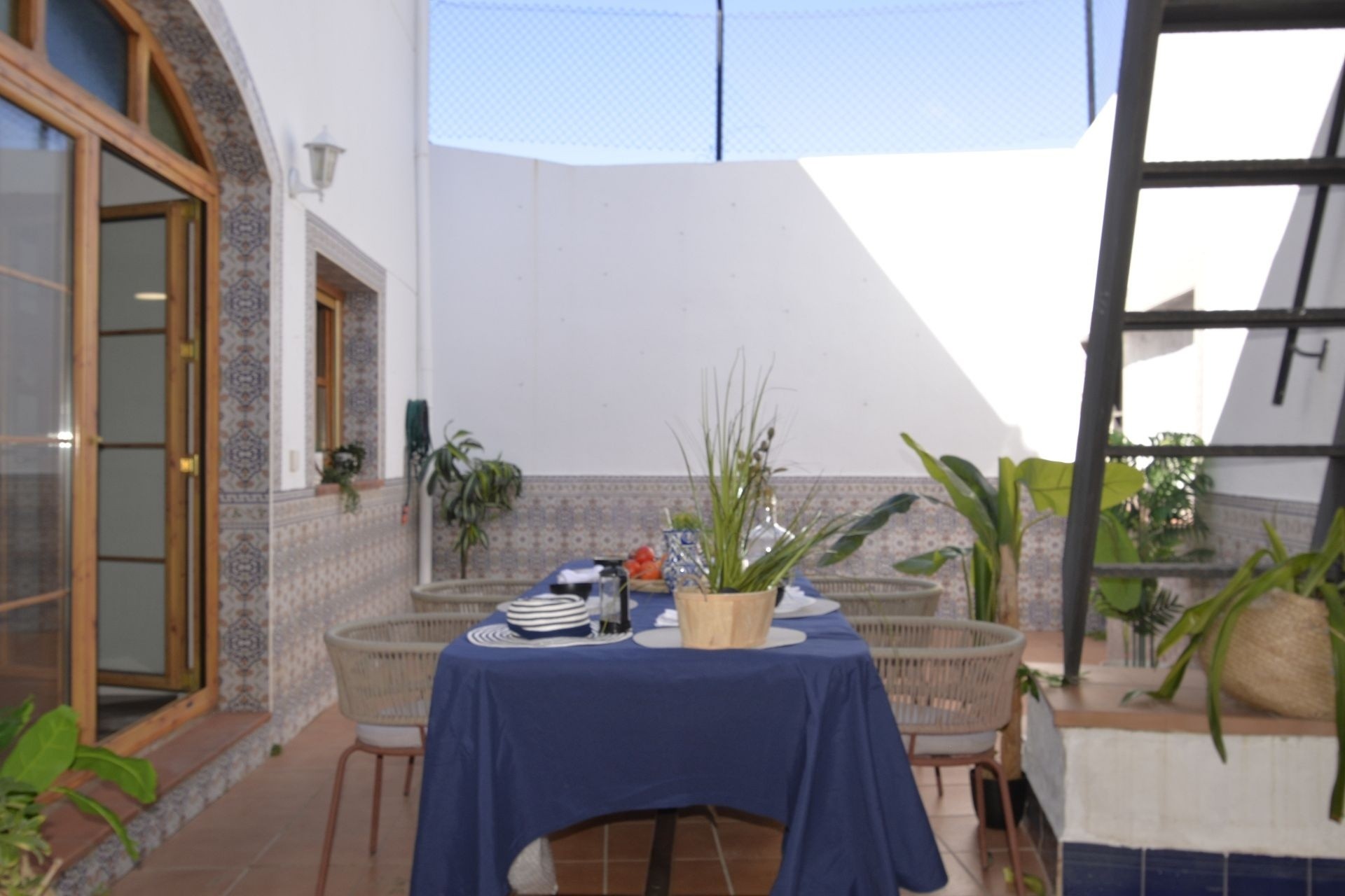 De grote keuken is verbonden met een gezellige eetkamer met open haard en airconditioning, wat een perfecte setting creëert voor familiediners of een feestje. Vanuit hier stapt u op een terras van 30 m², ideaal om buiten te eten of te ontspannen. Een trap leidt naar een prachtig dakterras van 50 m² met een panoramisch uitzicht – perfect voor zonsondergang of zomerse bijeenkomsten.