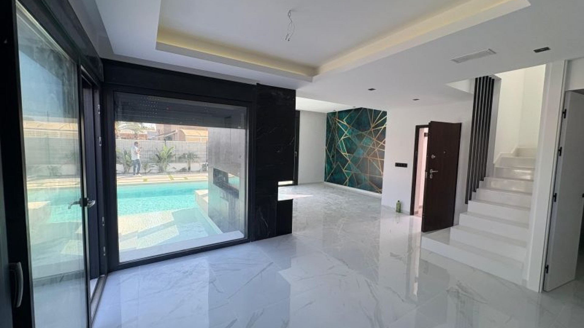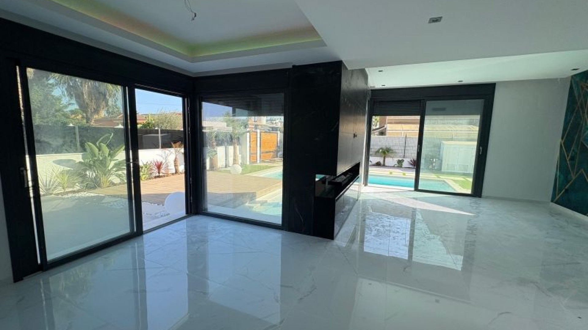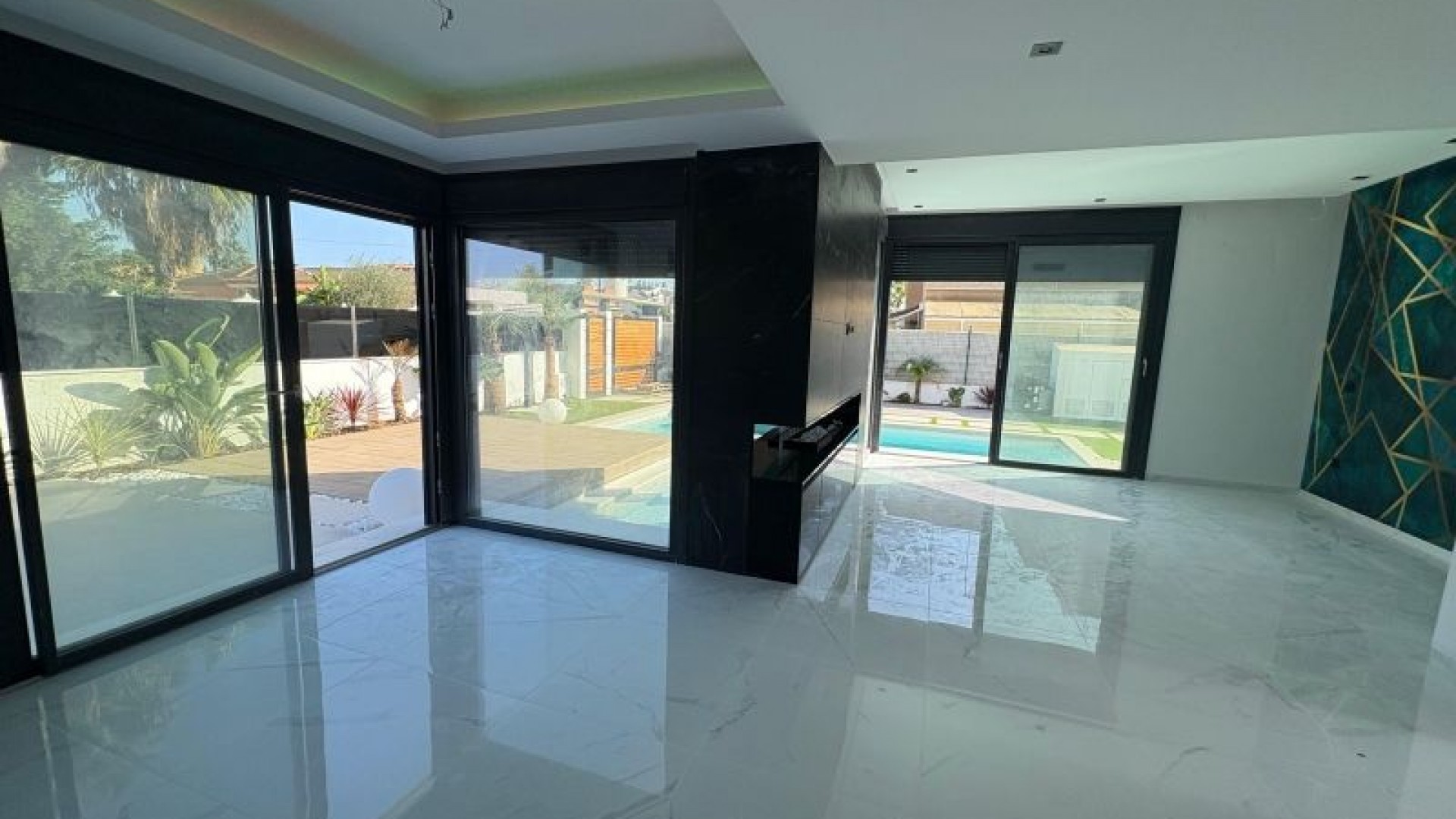 Exclusieve moderne villa op een perceel van 360 m² met een bebouwde oppervlakte van 230 m², met 3 slaapkamers en 3 complete badkamers. Geniet van uw eigen verwarmde privézwembad met ingebouwde warmtepomp, een solarium met pre-installatie voor een jacuzzi en een aangelegde tuin met natuurlijke beplanting. De woning is voorzien van een smart home-systeem, een volledig uitgeruste keuken met apparatuur, design inbouwkasten en 2 airconditioningunits. Instapklaar. Tijdelijke prijs: € 750.000