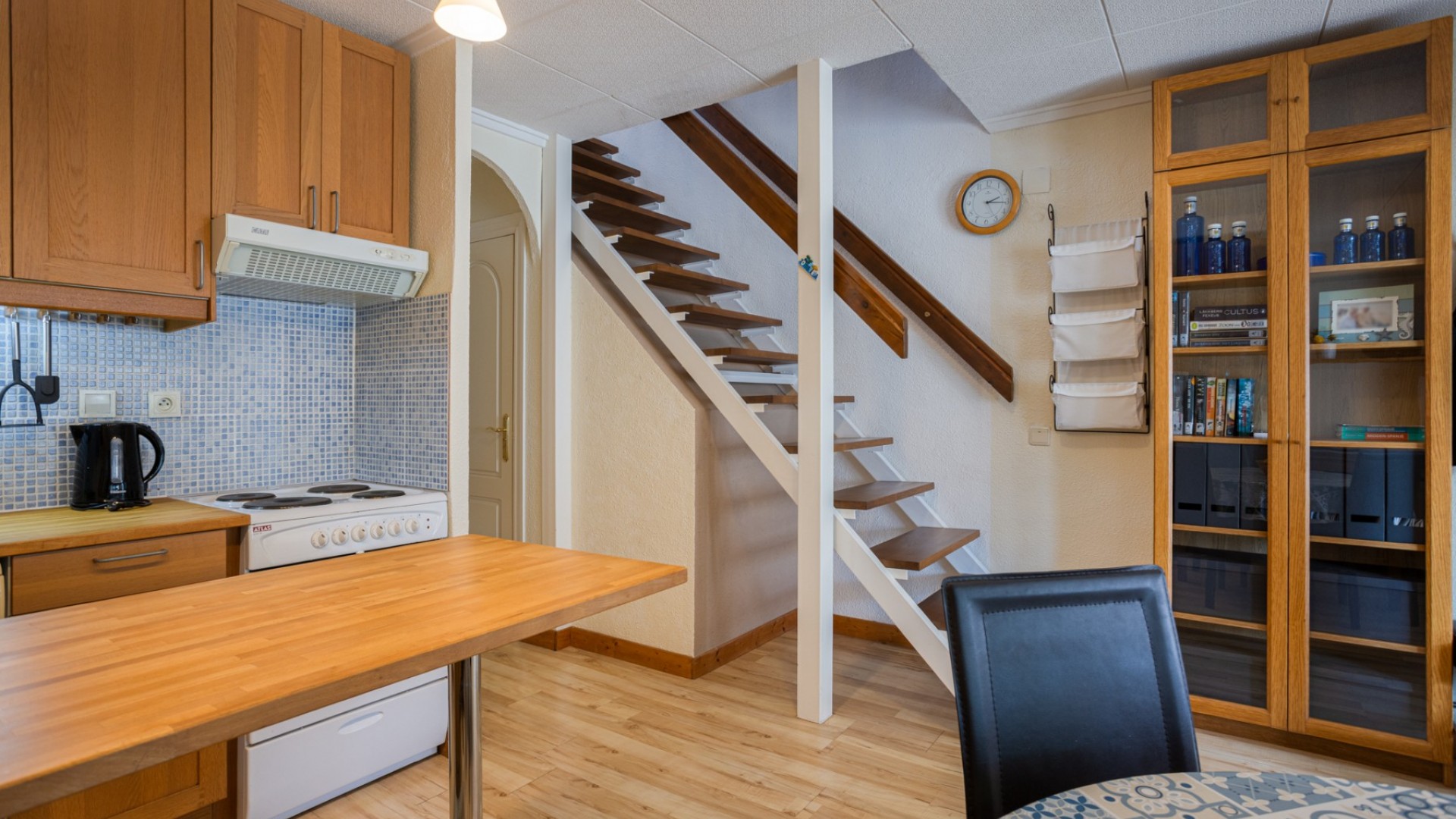 De woning biedt 88 m² woonoppervlakte en is functioneel en licht ingericht. Op de begane grond vindt u een gezellige woon-/eetkamer met directe toegang tot de veranda en het privéterras, een perfecte plek om te ontspannen, tijd door te brengen met familie en vrienden of te genieten van aangename zomeravonden. De open, moderne en volledig uitgeruste keuken sluit naadloos aan op de woonkamer en creëert een ruime en praktische omgeving.