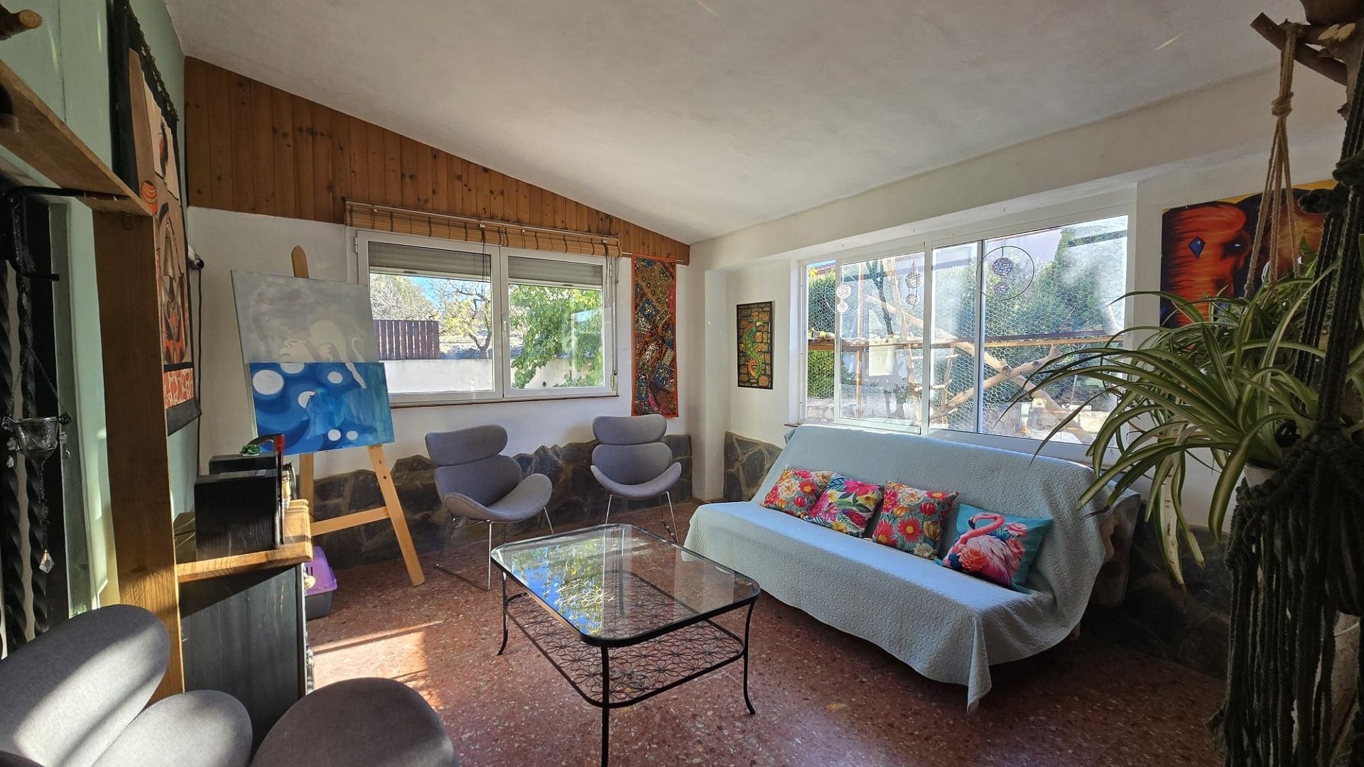 Gelegen op een royaal perceel van 2300 m², omvat het terrein een weelderige olijfgaard, wat zowel charme als productiviteit toevoegt aan de woning. Dit is een werkelijk uitzonderlijke landhuis met rust, privacy en een overvloed aan buitenruimte – allemaal binnen handbereik van Castalla en haar voorzieningen.
