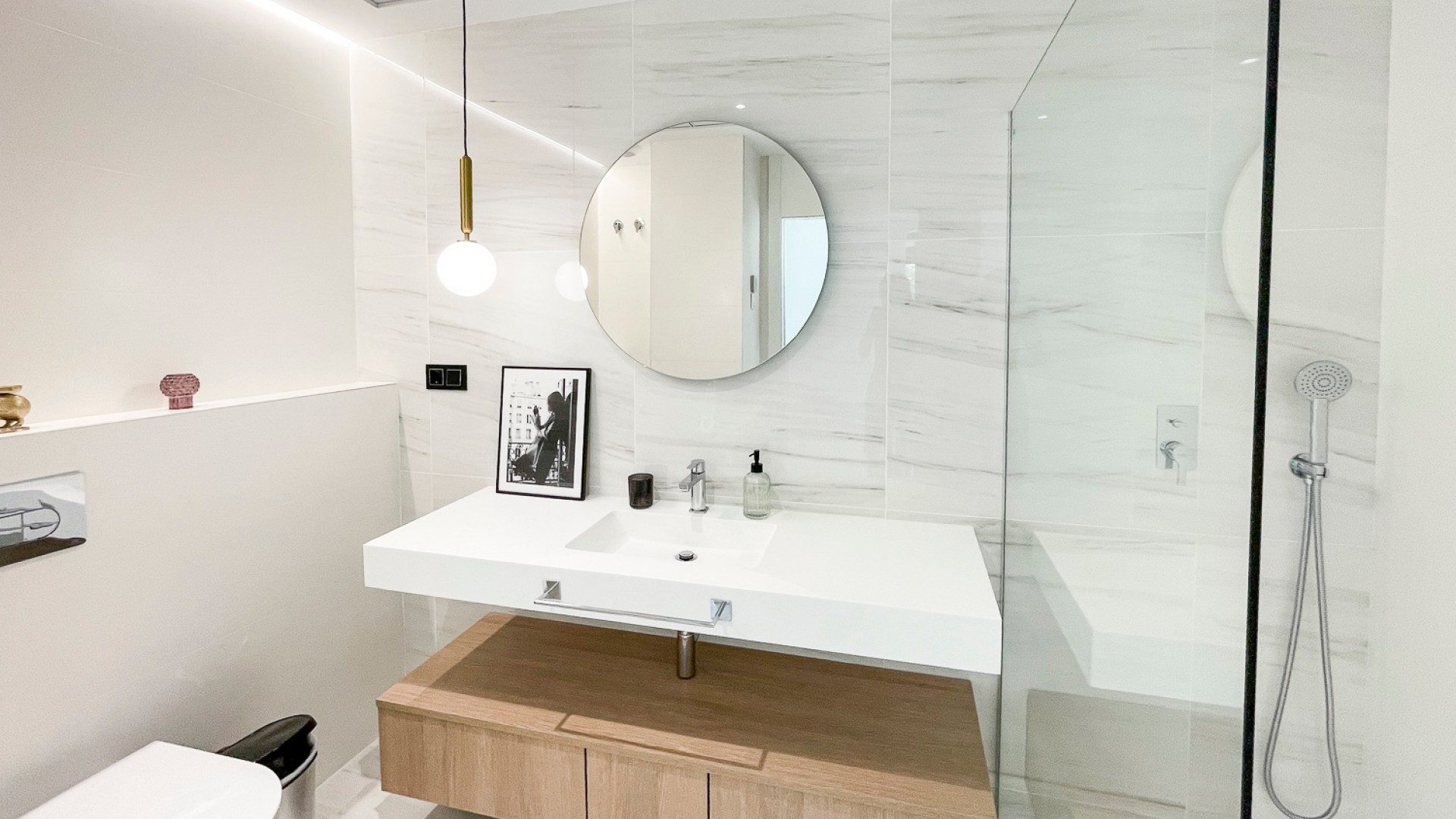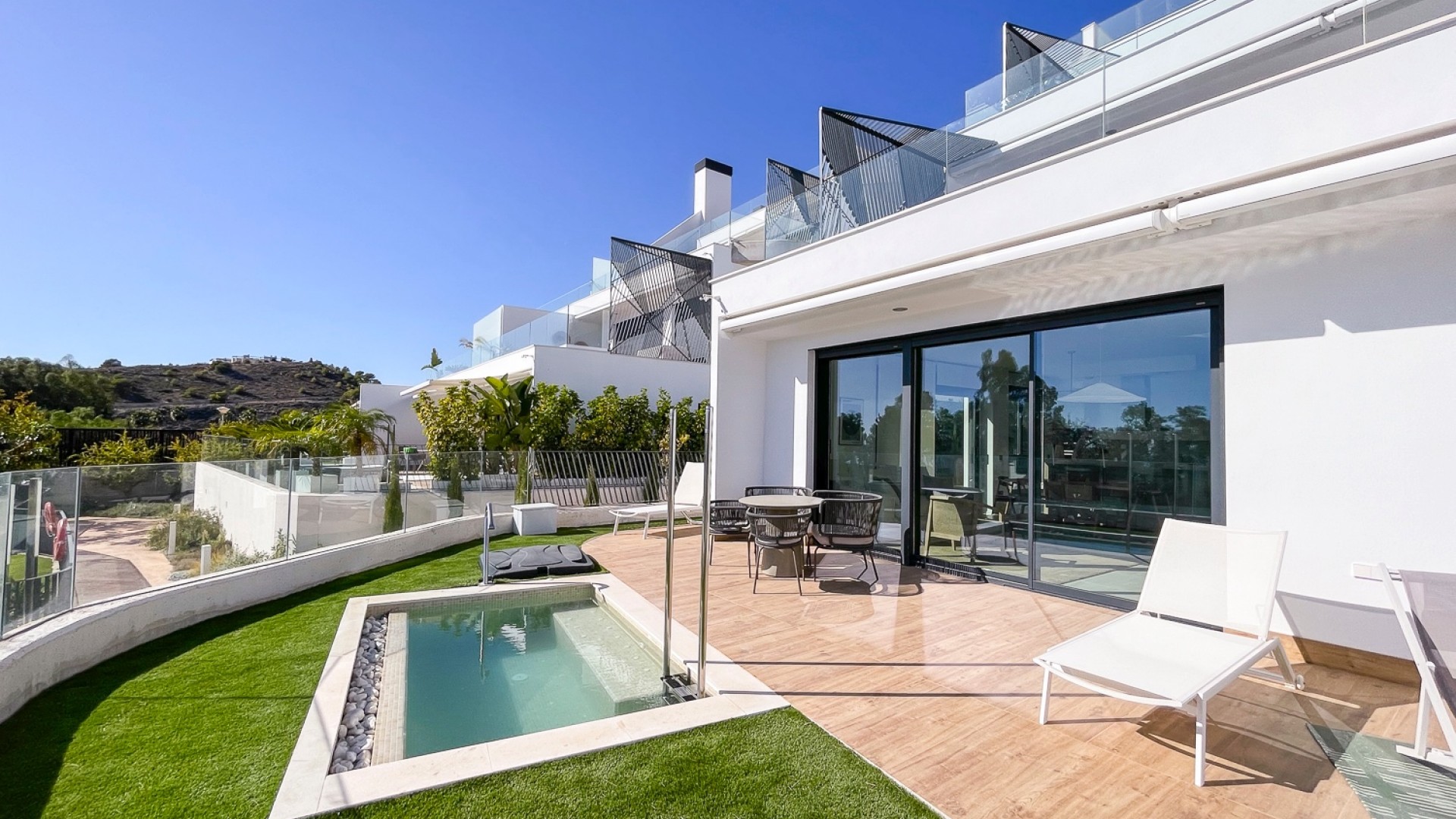 Appartement van 124 m², gebouwd in 2022, gelegen in een afgesloten gemeenschap direct aan het strand, die een rustige en comfortabele levensstijl aan de Costa Blanca biedt. De woning beschikt over 3 ruime slaapkamers en 3 volledige badkamers, afgewerkt met hoogwaardige materialen en een modern design. Het terras van 48 m² biedt spectaculaire zeezichten en uitzicht op de weelderige groene zones van het complex, wat een ideale plek creëert om te ontspannen of buiten te dineren. Het appartement is volledig gemeubileerd en uitgerust voor comfort, met airconditioning, plafondventilatoren en ingebouwde kasten. De indeling is functioneel, met veel natuurlijk licht en efficiënt ruimtegebruik. De gemeenschap biedt uitstekende faciliteiten, zoals een design gemeenschappelijk zwembad, tropische tuinen en groene ruimtes. Bovendien beschikt de woning over een privézwembad en een eigen tuin voor extra exclusiviteit. Voor het gemak is er een privé dubbele garage en een berging. De veiligheid is gegarandeerd met een alarmsysteem en gecontroleerde toegang tot het complex. Met een oostelijke oriëntatie geniet u hier van adembenemende zonsopgangen boven de zee en een serene omgeving om te genieten van het leven aan de kust. Gelegen in Villajoyosa, een groeiende bestemming aan de Costa Blanca, is dit appartement een uitstekende keuze voor wie op zoek is naar een stijlvolle en privéwoning aan zee.