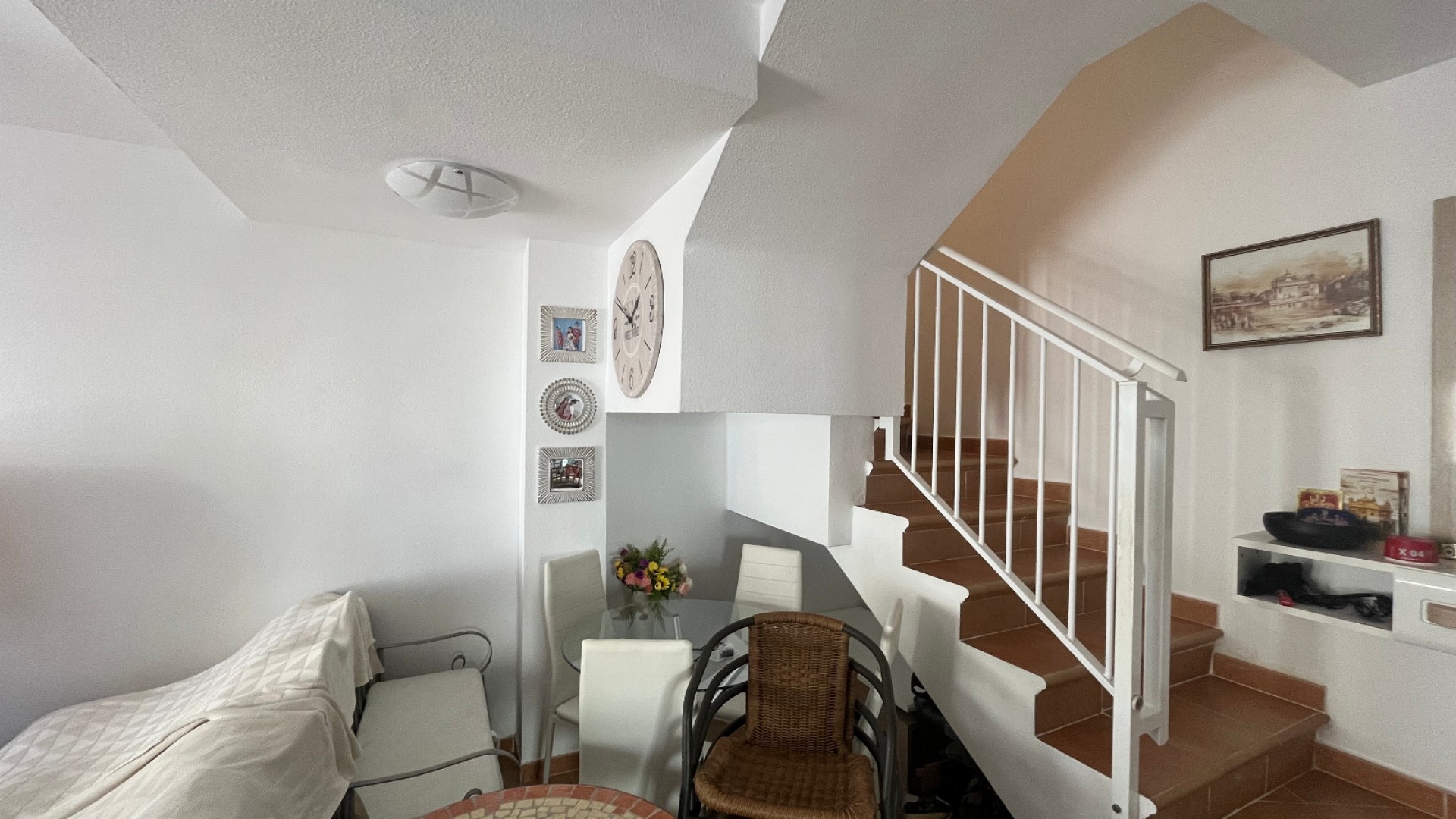 Een op het zuiden gelegen quadhuis met 3 slaapkamers en 2 badkamers in Panorama Golf, Villamartin, Costa Blanca. Dit prachtige pand wordt te koop aangeboden in goede staat en bestaat in het kort uit het volgende: Op de begane grond bevindt zich een woon-/eetkamer met warme en koude airconditioning, een aparte volledig ingerichte keuken, 1 tweepersoonsslaapkamer met ingebouwde kasten en warme en koude airconditioning en een doucheruimte. Op de eerste verdieping bevinden zich twee slaapkamers met tweepersoonsbed, beide met ingebouwde kasten en warme en koude airconditioning. De hoofdslaapkamer heeft een eigen balkon en één familiebadkamer. Buiten is er een verhoogd terras met de hele dag zon, een privé solarium op het dak, een gemeenschappelijk zwembad, gemeenschappelijke parkeergelegenheid en nog veel meer. Het ligt op ongeveer 5 minuten lopen van lokale bars en restaurants en op ongeveer 15 minuten lopen van de beroemde Villamartin Plaza & Golf Course, waar u talloze bars, winkels en restaurants vindt. Op minder dan 5 minuten rijden vindt u nog eens 3 golfbanen en op minder dan 10 minuten rijden van het fantastische strand van La Zenia. U kunt ook gebruikmaken van de nieuwe lokale busdienst. Het winkelcentrum Zenia Boulevard ligt ook op slechts 5 minuten rijden. De luchthaven van Alicante ligt op 50 minuten rijden en de luchthaven van Murcia Corvera op 35 minuten rijden. Waarom kiezen voor Solmar Estates? Wij zijn trotse leden van de API – Agente de la Propiedad Inmobiliaria – een vereniging die al jarenlang actief is in de Spaanse vastgoedsector. Lidmaatschap van de API is een optie die makelaars kiezen en die gepaard gaat met verplichtingen op het gebied van opleiding, ervaring en een uitgebreide ethische code. Het API-lidmaatschap biedt onze kopers en verkopers maximale garanties over onze werkwijze en kwalificaties. API-registratienummer 00280. Voor meer informatie klikt u op onderstaande link https://tinyurl.com/4hnan8af