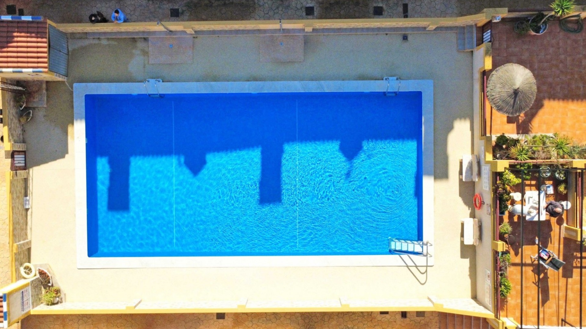 Deze goed onderhouden hoekwoning is gelegen in een afgesloten wooncomplex en biedt royale buitenruimtes, veel natuurlijk licht en mooi uitzicht op het gemeenschappelijke zwembad. De woning is verdeeld over meerdere verdiepingen en beschikt over drie slaapkamers en drie badkamers, ideaal voor permanente bewoning of als vakantiehuis. Dankzij de hoekligging geniet de woning van extra privacy en een lichte, open sfeer. Buitenleven staat centraal met terrassen op elk niveau: Terras op de begane grond, perfect om te ontspannen of buiten te eten Balkon op de bovenverdieping met open uitzicht Privé dakterras, ideaal om te zonnen en van de avonden te genieten De woning verkeert in goede staat en is instapklaar, met een praktische indeling en comfortabele leefruimtes. Het afgesloten complex biedt extra veiligheid en beschikt over een goed onderhouden gemeenschappelijk zwembad, zichtbaar vanuit de woning en gemakkelijk bereikbaar. Een veelzijdige woning die uitstekend geschikt is als vaste woning, vakantiewoning of verhuurinvestering, met veel buitenruimte en een aantrekkelijke hoekligging.