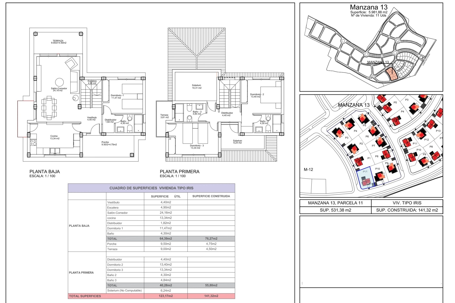 Binnen onderscheiden de woningen zich door hun porseleinen tegelvloeren, die esthetiek en duurzaamheid combineren. De indeling is ontworpen om comfort en functionaliteit te maximaliseren, met goed gedefinieerde ruimtes die het dagelijks leven vergemakkelijken. De opties van 3 of 4 slaapkamers en 2 of 3 badkamers maken het mogelijk om de configuratie te kiezen die het beste bij de gezinsbehoeften past. De pre-installatie van airconditioning en ingebouwde kasten zijn details die extra waarde toevoegen, waardoor deze woningen een comfortabele en praktische plek zijn om te wonen.