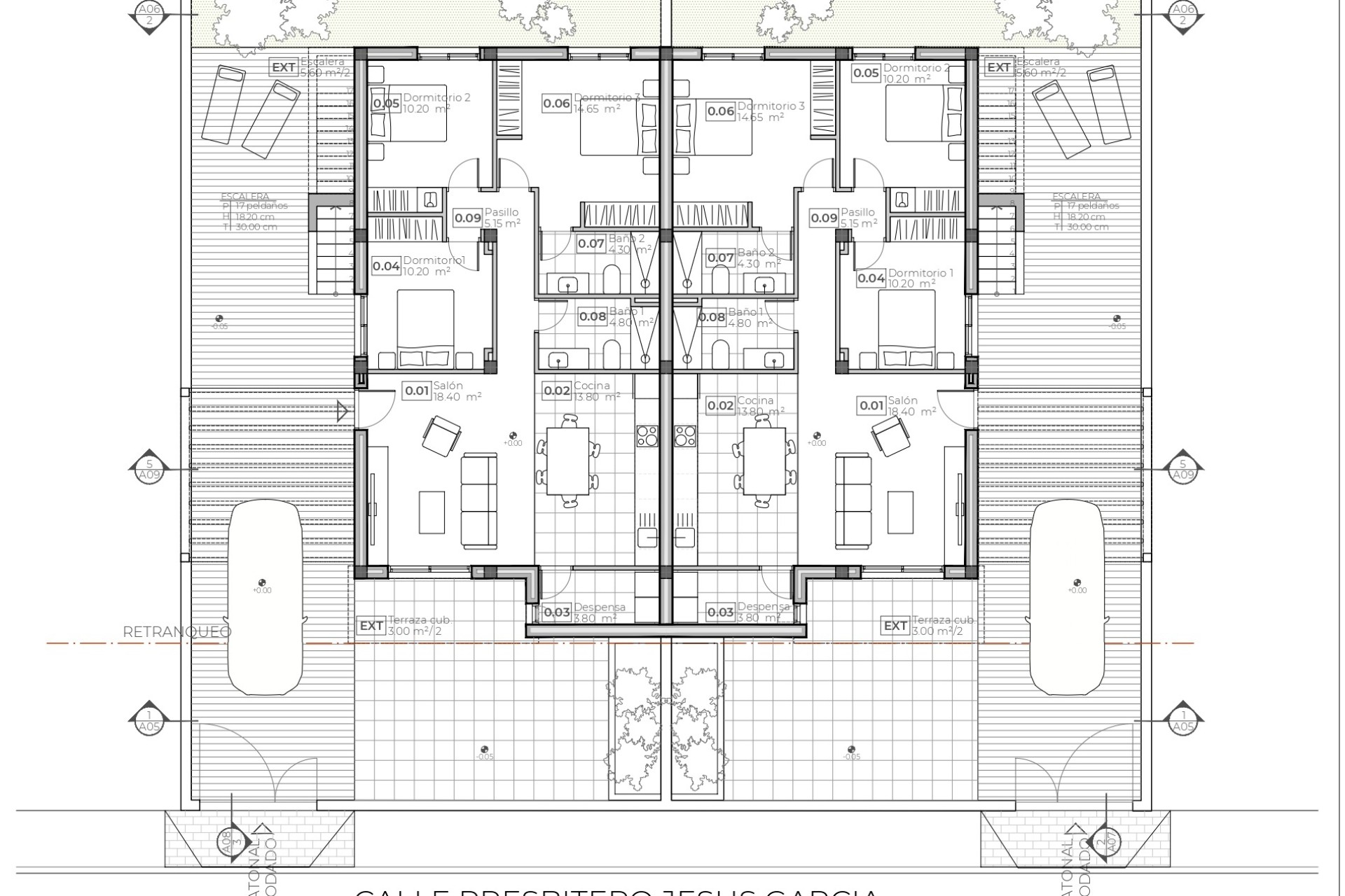 Het interieur van de geschakelde woningen is ontworpen om comfort en functionaliteit te bieden. Elke woning beschikt over drie slaapkamers en twee badkamers, wat voldoende ruimte biedt voor gezinnen. Ingebouwde kasten in de slaapkamers optimaliseren de opslagruimte, terwijl de voorinstallatie van airconditioning het hele jaar door een aangename sfeer garandeert. De vloer van porseleinen tegels voegt een vleugje elegantie toe en vergemakkelijkt het onderhoud. Bovendien bevatten sommige woningen een jacuzzi, wat extra comfort en luxe biedt.