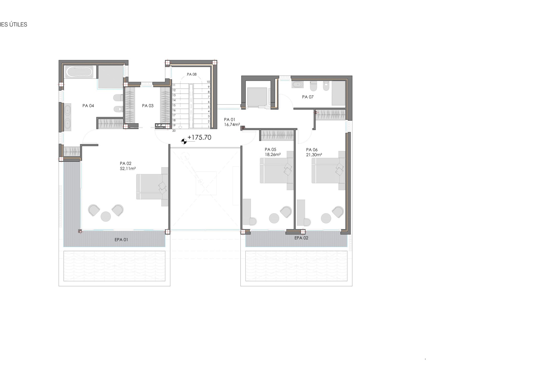 Het exterieurontwerp van de villa's in Golf Bahía is gewoonweg spectaculair. Elke eigendom beschikt over een privétuin, ideaal om van de frisse lucht te genieten en familiebijeenkomsten of ontmoetingen met vrienden te organiseren. Bovendien beschikken de villa's over een terras dat extra ruimte biedt om te ontspannen en te genieten van het uitzicht op zee. De aanwezigheid van een privézwembad in elke villa voegt een vleugje luxe en exclusiviteit toe, waardoor bewoners kunnen genieten van een verfrissende duik in de privacy van hun huis. Toegang tot een privégarage zorgt voor het comfort en de veiligheid van de voertuigen van de bewoners.