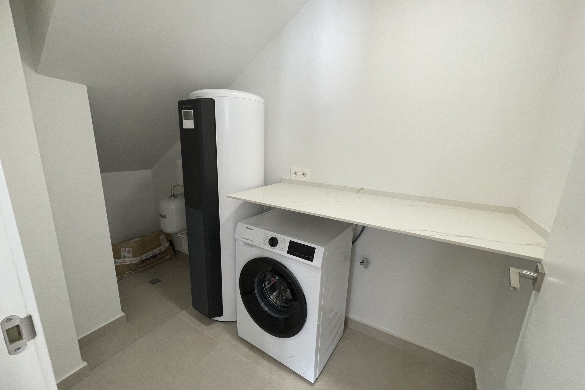 Het interieur van de woning is zorgvuldig ingedeeld om comfort en functionaliteit te bieden. Met drie slaapkamers kan elk gezinslid genieten van zijn eigen privéruimte. De drie badkamers zorgen ervoor dat de dagelijkse routines soepel verlopen, zelfs tijdens drukke momenten. De aanwezigheid van airconditioning in het hele huis garandeert een comfortabele omgeving, ongeacht de buitentemperatuur. De geïntegreerde apparaten in de keuken maken het bereiden van maaltijden eenvoudig, terwijl de ingebouwde kasten in de slaapkamers praktische en esthetische opbergoplossingen bieden.