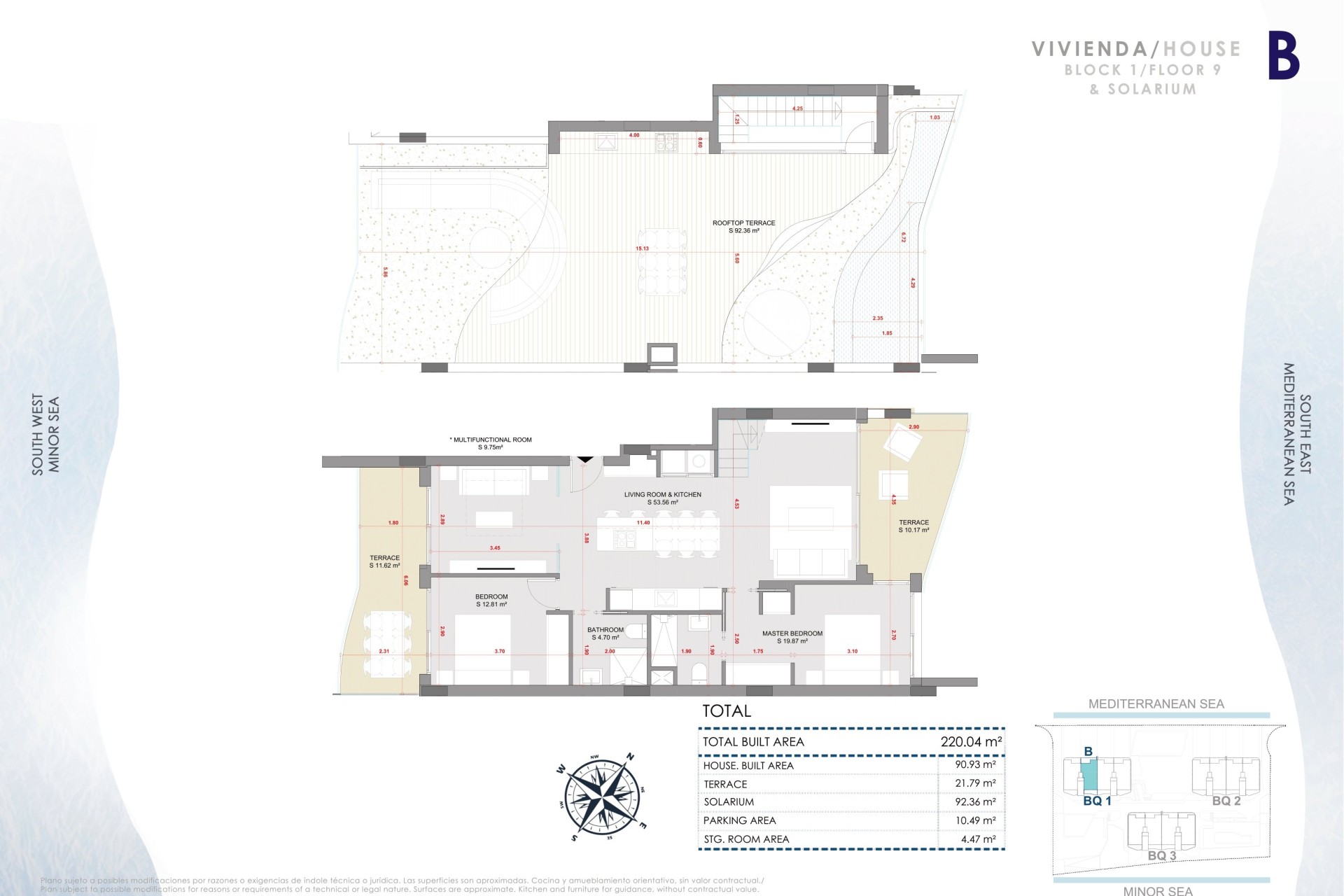 De buitenruimtes van deze residentie zijn ontworpen om optimaal te genieten van de natuurlijke omgeving. Elke woning heeft een privétuin, ideaal om buiten te ontspannen. De ruime terrassen bieden extra ruimte om te genieten van het uitzicht op zee en het mediterrane klimaat. Bovendien bevatten sommige typologieën een solarium, dat een exclusieve ruimte biedt om te zonnebaden of te genieten van rustige momenten. De locatie aan de eerste lijn van het strand zorgt ervoor dat bewoners kunnen genieten van de zeebries en ononderbroken uitzicht op de horizon.