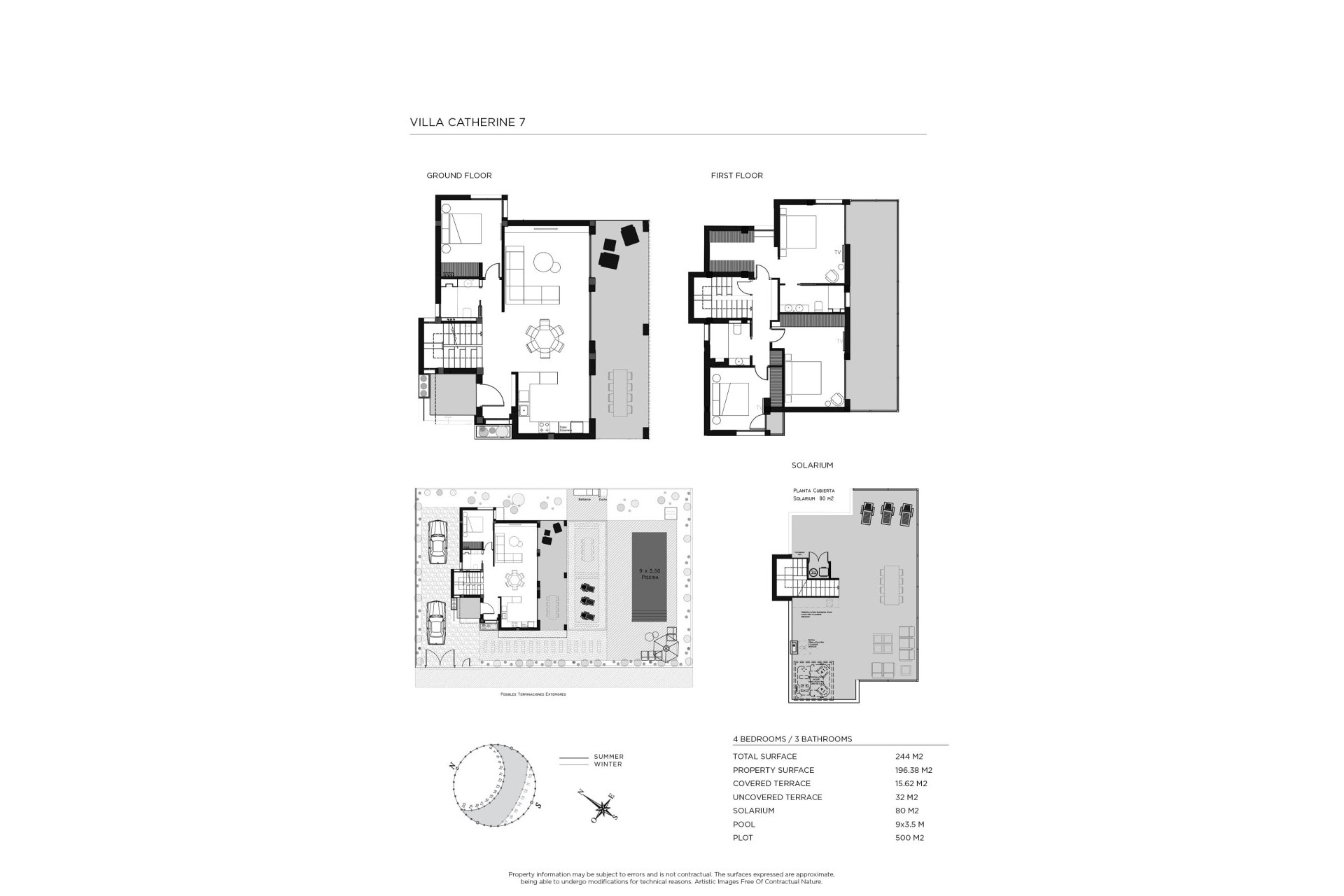 De buitenkant van deze woningen is een ware oase van ontspanning. Elke woning heeft een privé tuin, perfect om te genieten van het mediterrane klimaat. De aanwezigheid van een privézwembad voegt een vleugje luxe toe, waardoor je kunt afkoelen op de warmste dagen. Bovendien bieden de terrassen en het solarium extra buitenruimtes voor recreatie, ideaal voor familiebijeenkomsten of gewoon om van een rustig moment te genieten. De pergola biedt schaduw en een gezellige plek om te ontspannen tijdens de intense zonuren.