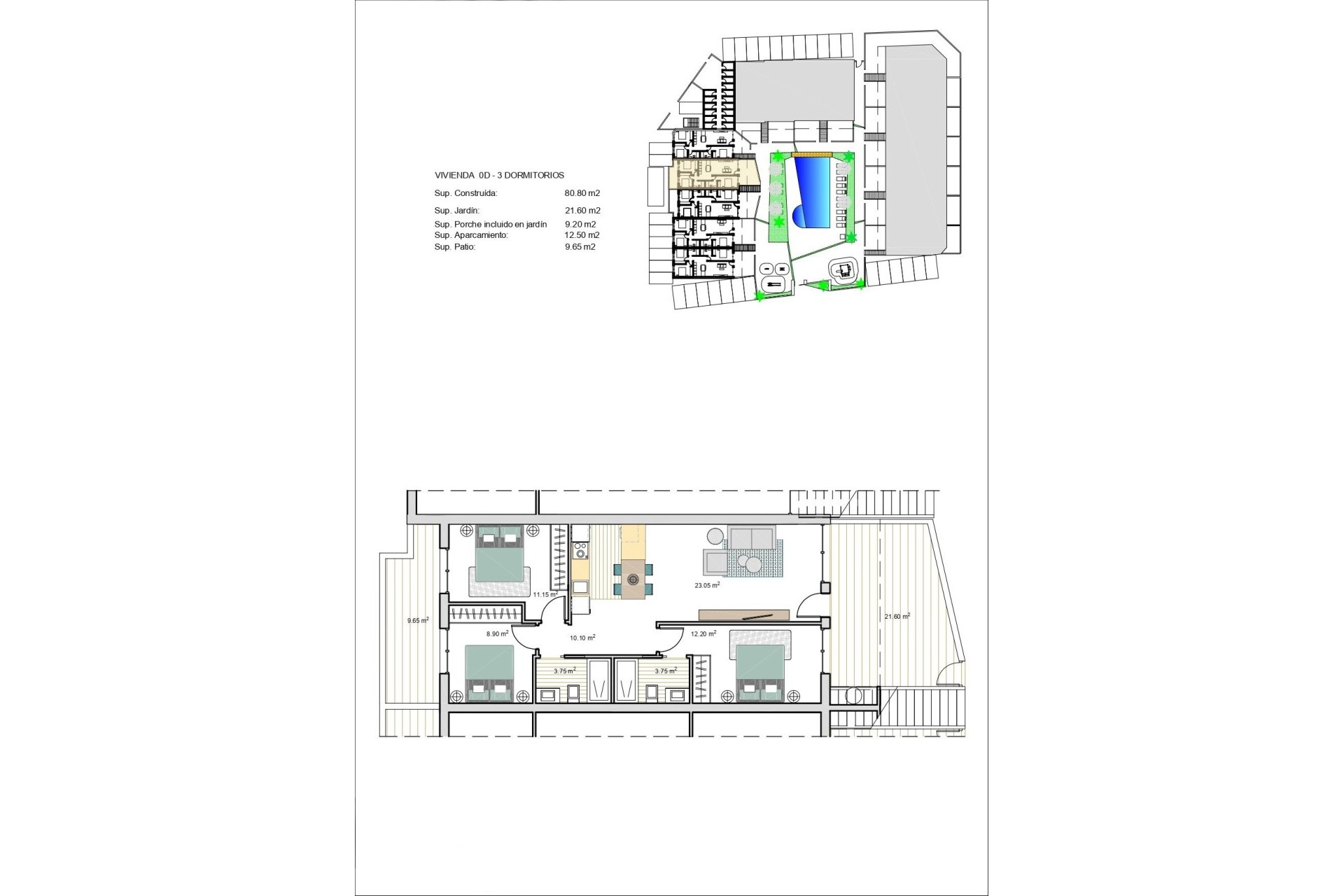 Het interieur van de bungalows is ontworpen om functionaliteit en comfort te bieden. De keramische vloeren geven een moderne uitstraling en zijn gemakkelijk te onderhouden. De woningen zijn uitgerust met apparaten, inbouwkasten en een pre-installatie voor airconditioning, wat het hele jaar door een comfortabele omgeving garandeert. De toevoeging van een video-intercom biedt een extra niveau van veiligheid en gemak.