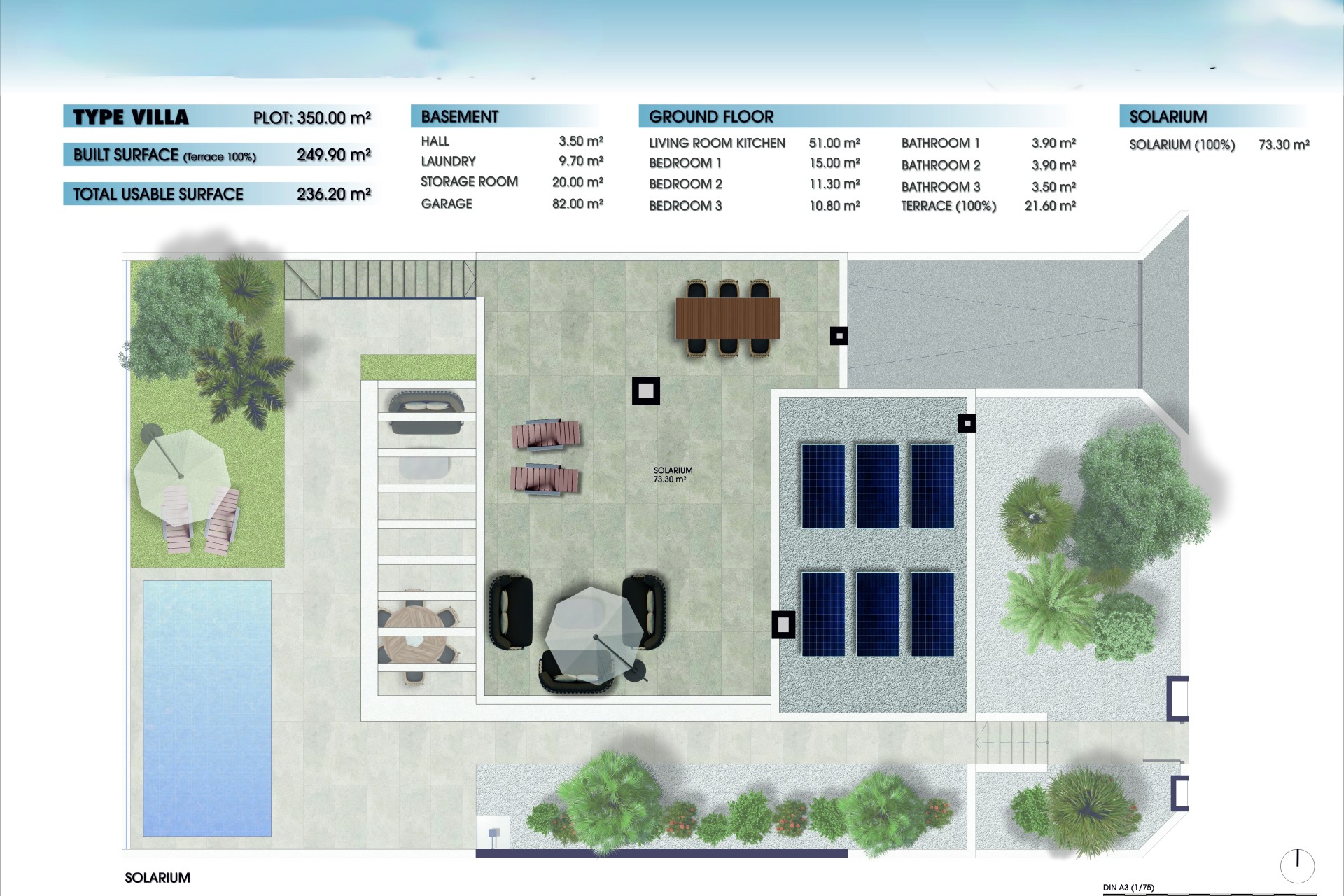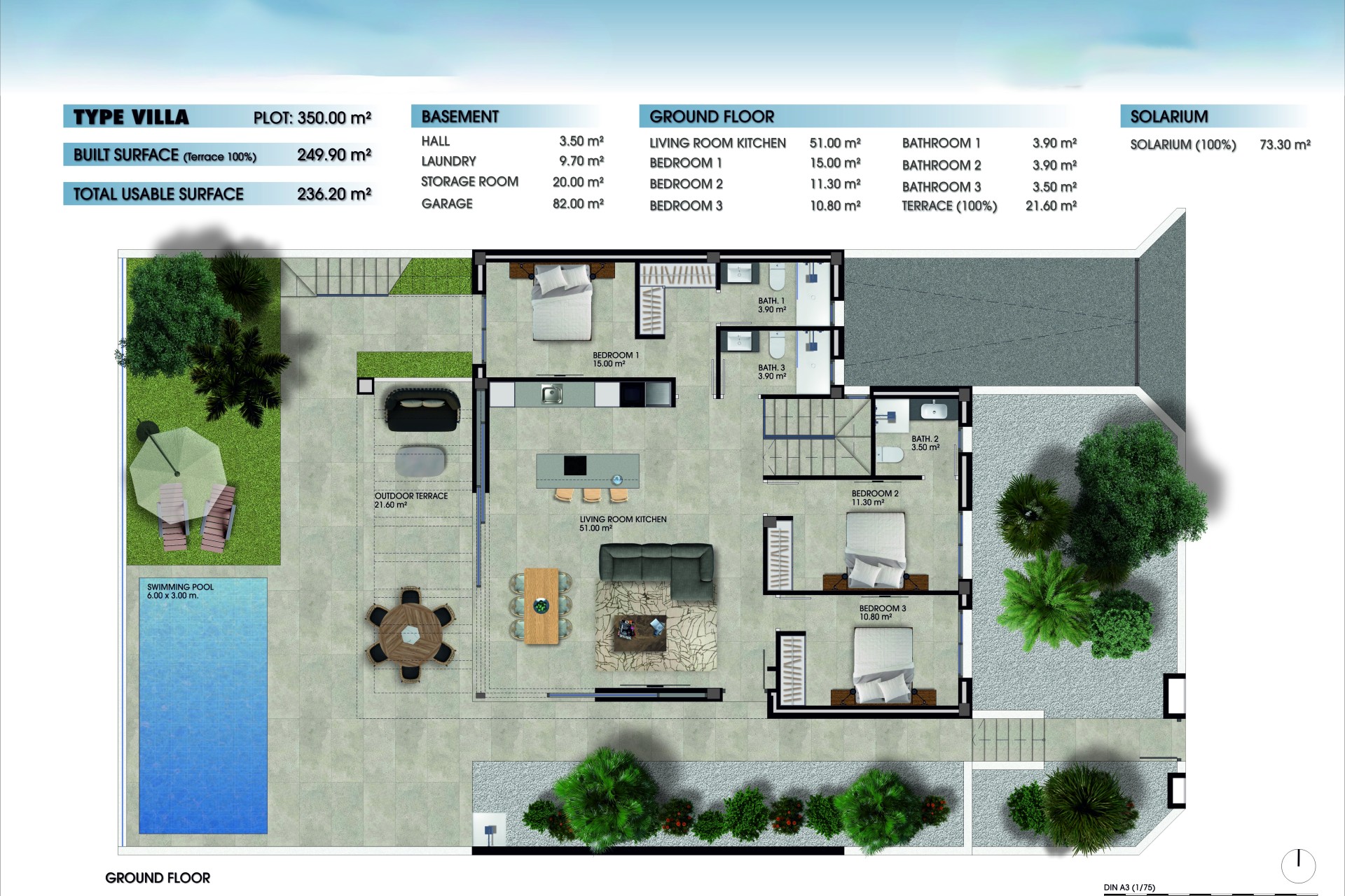 Het interieur van deze vrijstaande woningen is ontworpen om maximaal comfort en functionaliteit te bieden. Met drie slaapkamers en drie badkamers is elke woning uitgerust om te voldoen aan de behoeften van gezinnen of stellen die op zoek zijn naar ruimte en privacy. Ingebouwde kasten optimaliseren de opslag, terwijl elektrische rolluiken een vleugje moderniteit en gemak toevoegen. De porseleinen tegelvloer biedt een elegante en duurzame afwerking, ideaal voor dagelijks gebruik. De pre-installatie van airconditioning zorgt ervoor dat het binnenklimaat altijd aangenaam is, aangepast aan persoonlijke voorkeuren. Bovendien beschikt elke woning over een garage, die een veilige ruimte biedt voor parkeren en extra opslag.