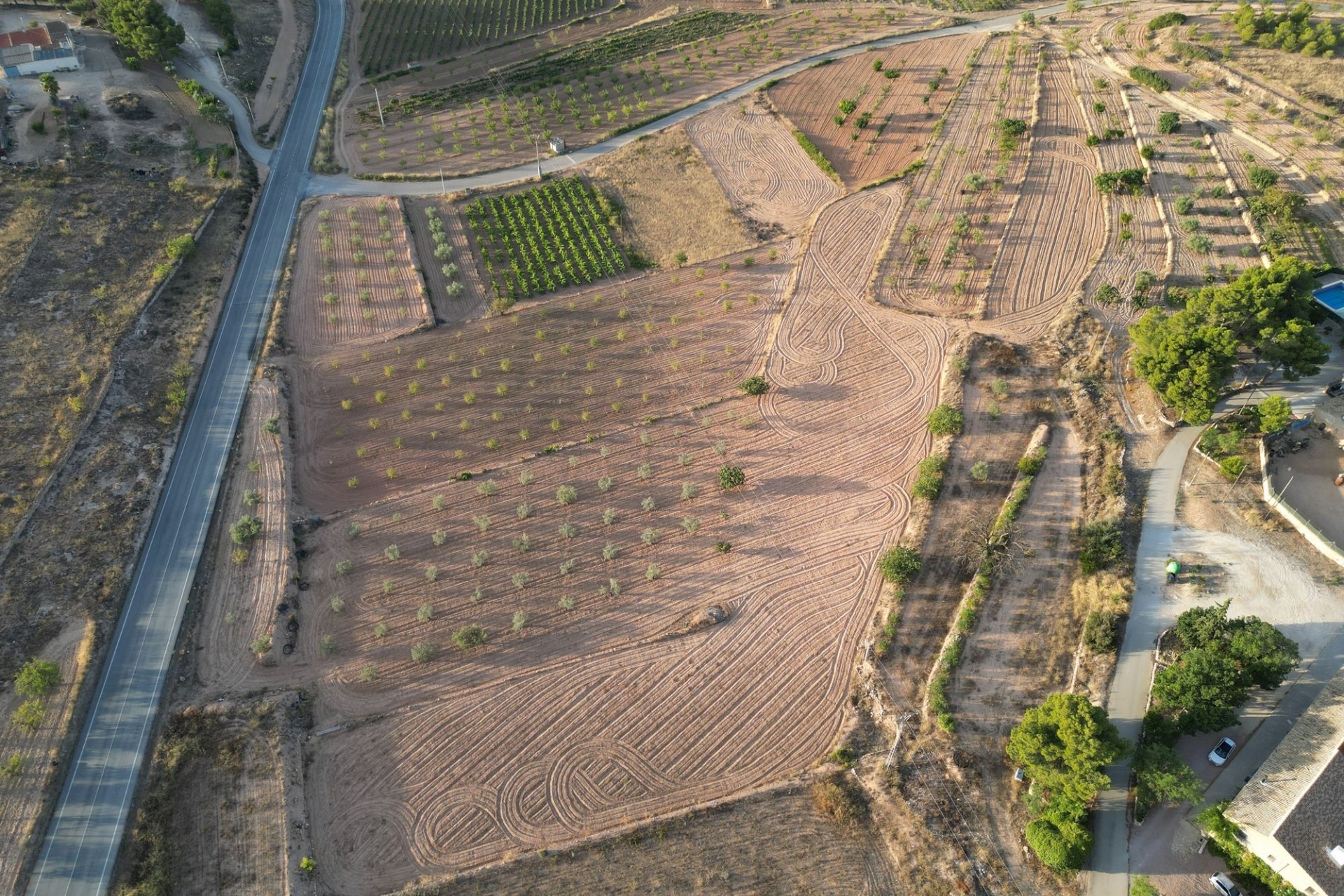 -Gedeeltelijk onbebouwd en schoon, gedeeltelijk beplant met olijfbomen en amandelbomen