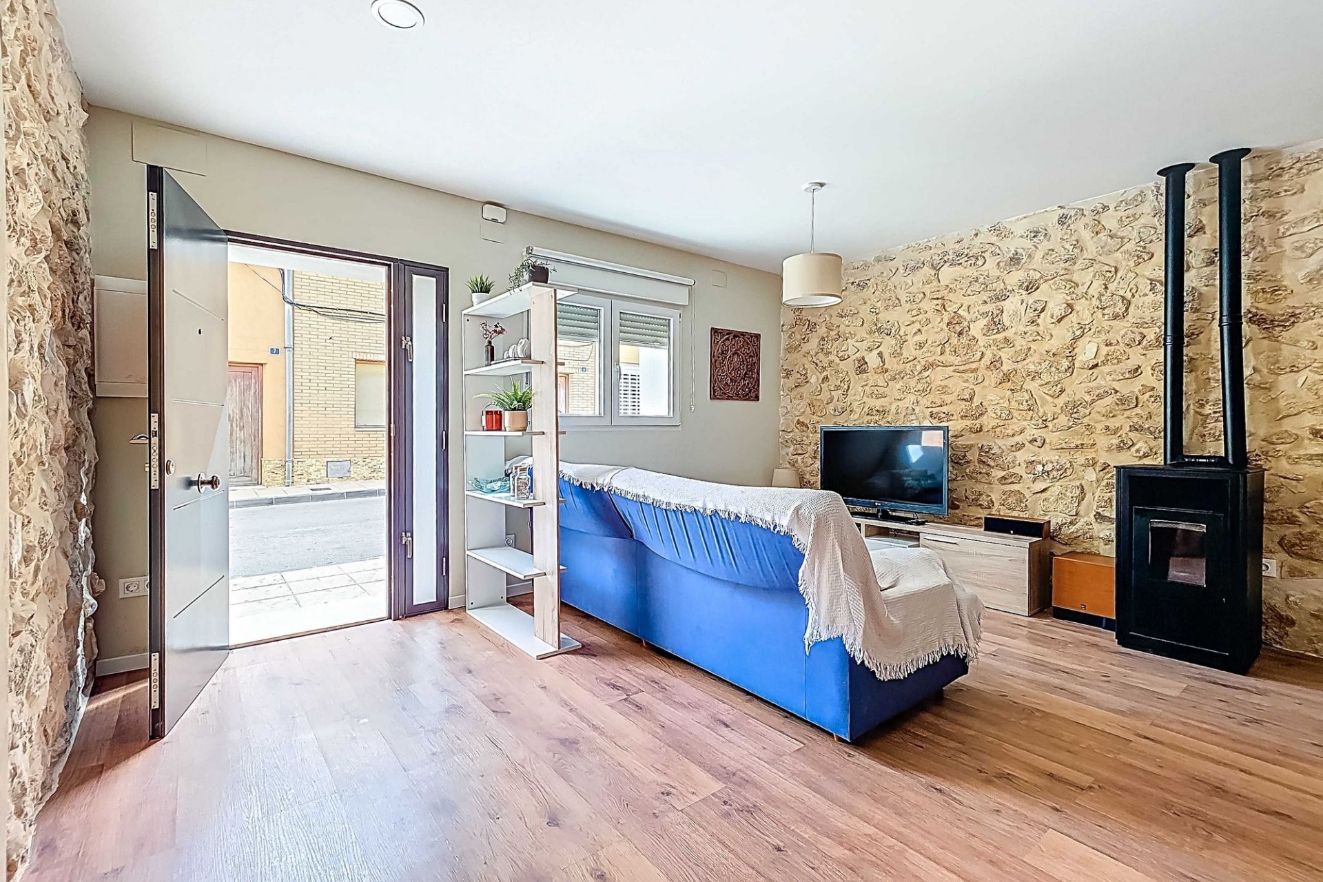 De woning – begane grondBij binnenkomst in de woonkamer met open en volledig uitgeruste keuken, wordt direct de sfeervolle uitstraling van de woning zichtbaar. De afwerking is modern, terwijl authentieke materialen een eigentijdse Spaanse sfeer oproepen. De paletkachel in de living versterkt het warme, gezellige gevoel. Op deze verdieping bevindt zich ook een slaapkamer met luxe en-suite badkamer met inloopdouche. De tussenruimte tussen de slaapkamer en badkamer is voorzien van diverse kasten zodat er een royale opbergruimte is ontstaan.