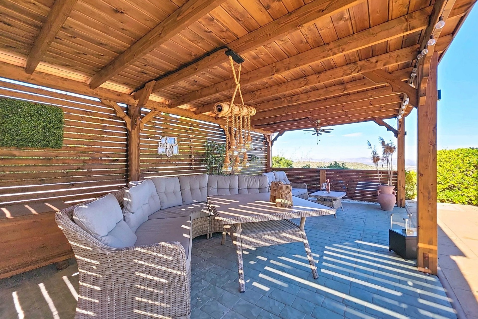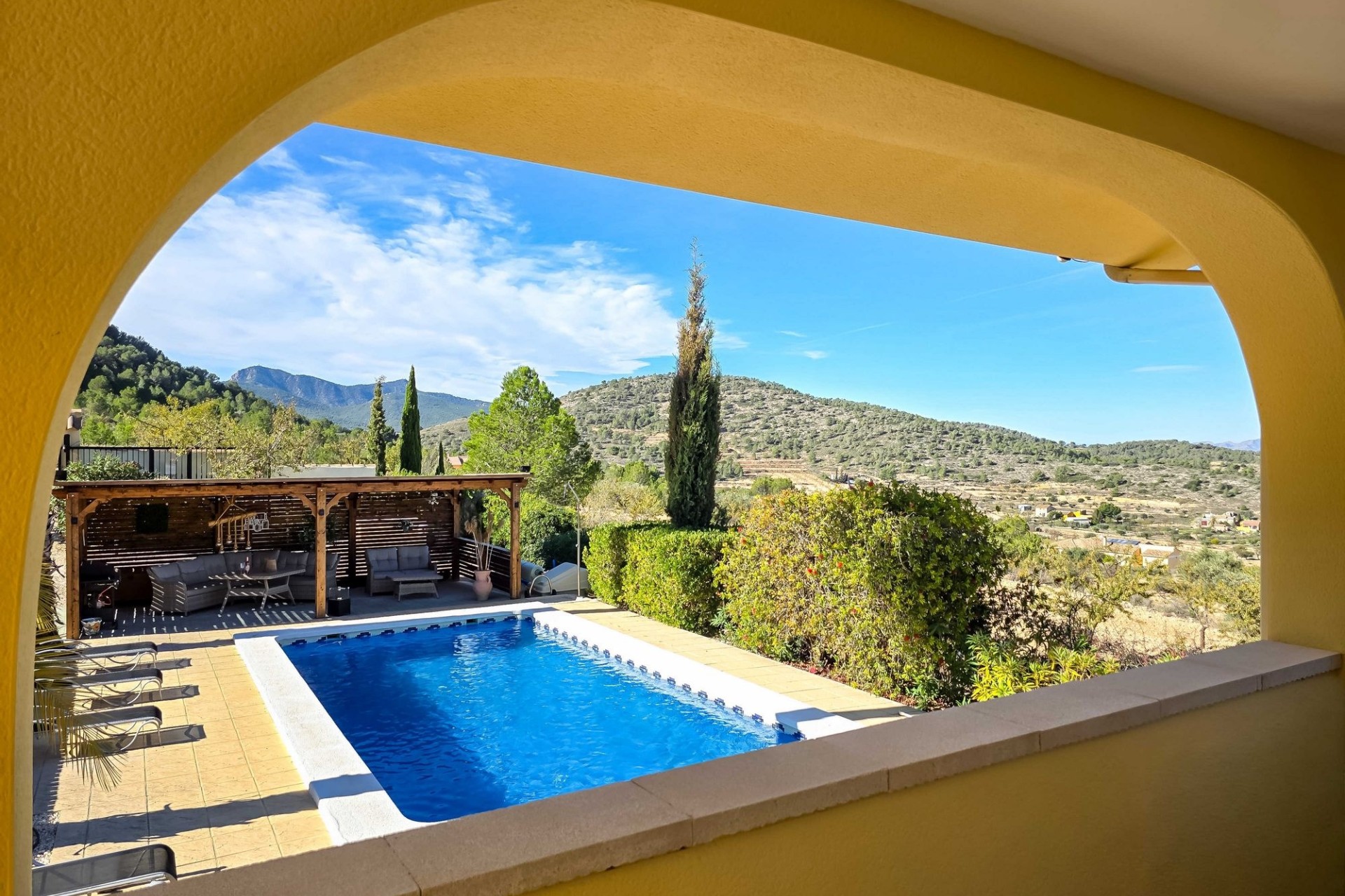 Wat een droom…. Een instapklare villa met misschien wel het mooiste uitzicht over de Zarza-vallei.Vanaf het terras of aan het zwembad met een lokale wijn de zon onder zien gaan, omgeven door bergen en met volledige privacy?TerreinEenmaal door de elektrisch bedienbare poort ligt het geheel omheinde royale terrein. De onderhoudsarme tuin is netjes onderhouden en voorzien van onder andere diverse olijfbomen en amandelbomen (met automatische irrigatie). In de tuin bevindt zich een vrijstaande stenen bergruimte (2,5 x 5 meter).Er is een fraai buitengedeelte met zwembad (8 x 4 meter) met een recent geplaatste gazebo die zorgt voor een heerlijke schaduwplek tijdens de warme dagen.De villaDe perfect onderhouden villa is instapklaar en de meubels zijn eventueel ter overname. Dat schept de mogelijkheid om direct in de villa te kunnen wonen of deze als vakantiewoning te gebruiken. De villa heeft een royale en lichte woonkamer die overgaat in een eetgedeelte en goed uitgeruste keuken met A-merk inbouwapparatuur. De woning heeft drie slaapkamers waarvan de master bedroom een ensuite badkamer heeft. Er is bovendien nog een aparte badkamer. De woonkamer opent de deur naar een ruim overdekt terras met een panoramisch uitzicht op onder andere het zwembad, terwijl het eetgedeelte bij de keuken toegang biedt tot een tweede terras met een weids panorama over de vallei.