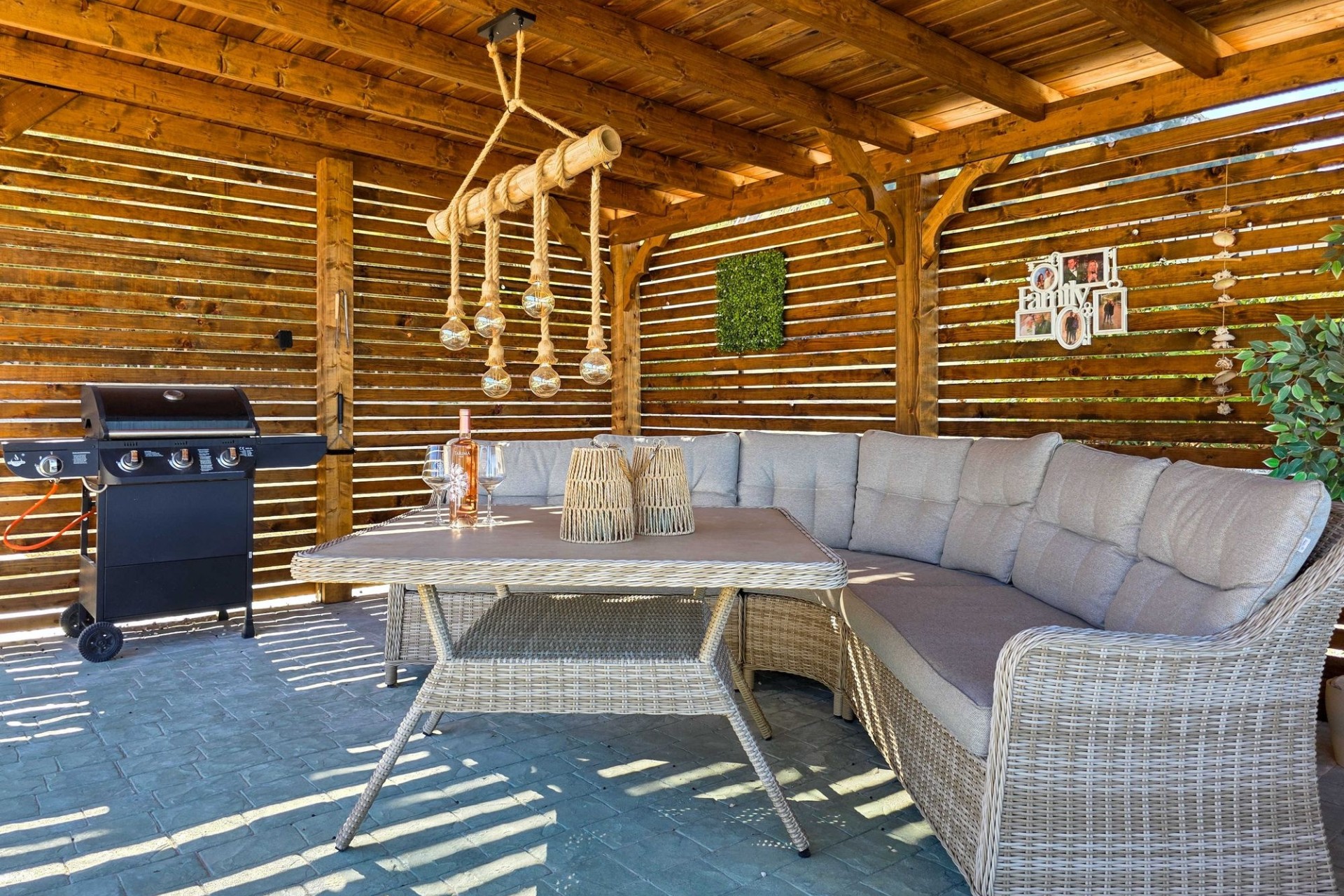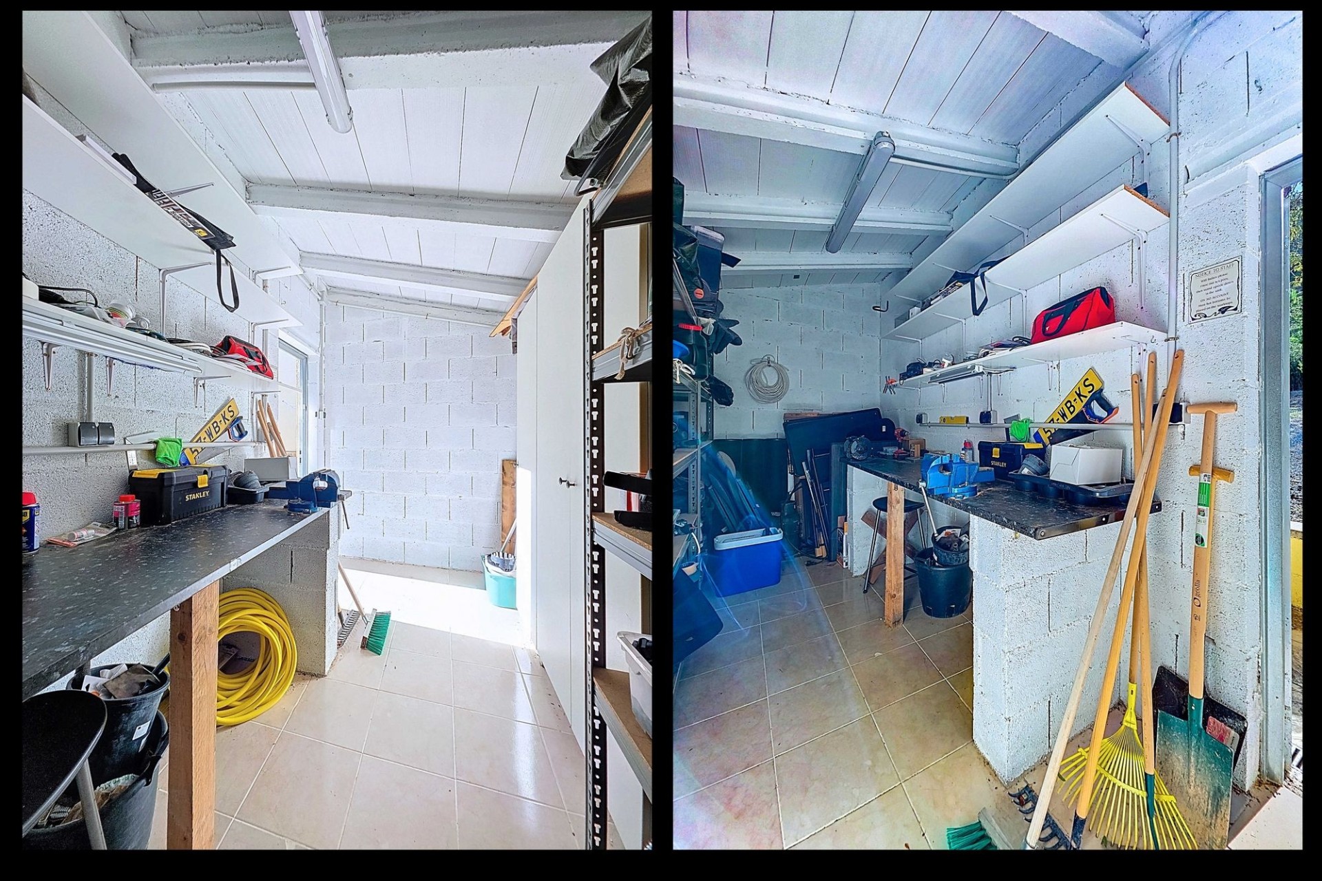 VoorzieningenDe villa is voorzien van een sfeervolle palletkachel in de woonkamer, er is centrale verwarming op gas met radiatoren in iedere kamer en er is (elektrische) vloerverwarming. In de woonkamer en master bedroom is recent wifi bedienbare airconditioning (warm/koud) geplaatst. Er is een septic tank en de villa is aangesloten op elektriciteit en er is een deposit voor water. Een solar panel zorgt voor warm water. De kunststof kozijnen met draai-kiepramen van de villa zijn voorzien van rolluiken met horren. Er is extra bergruimte onder een deel van de villa en boven de master bedroom (via een luik bereikbaar).