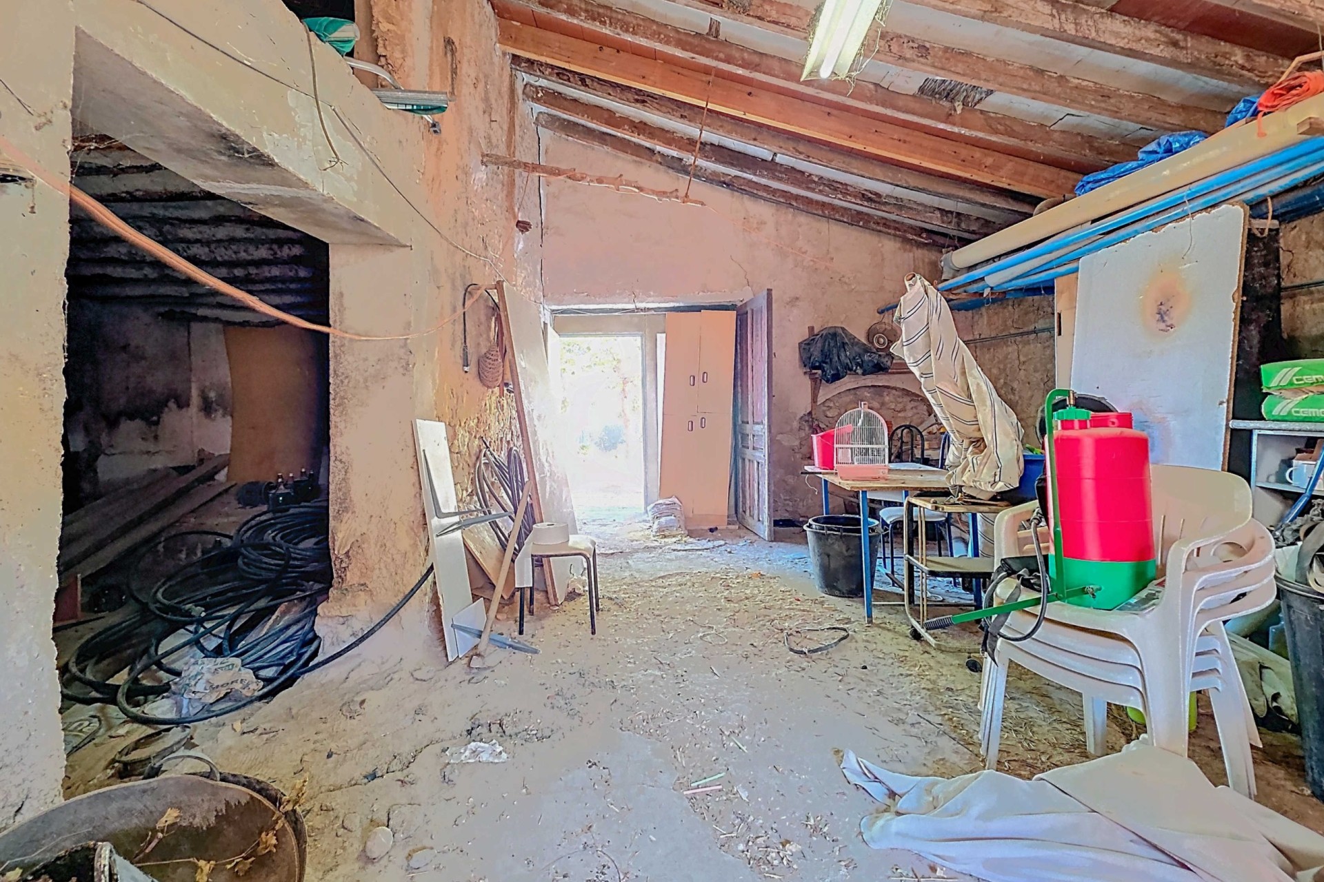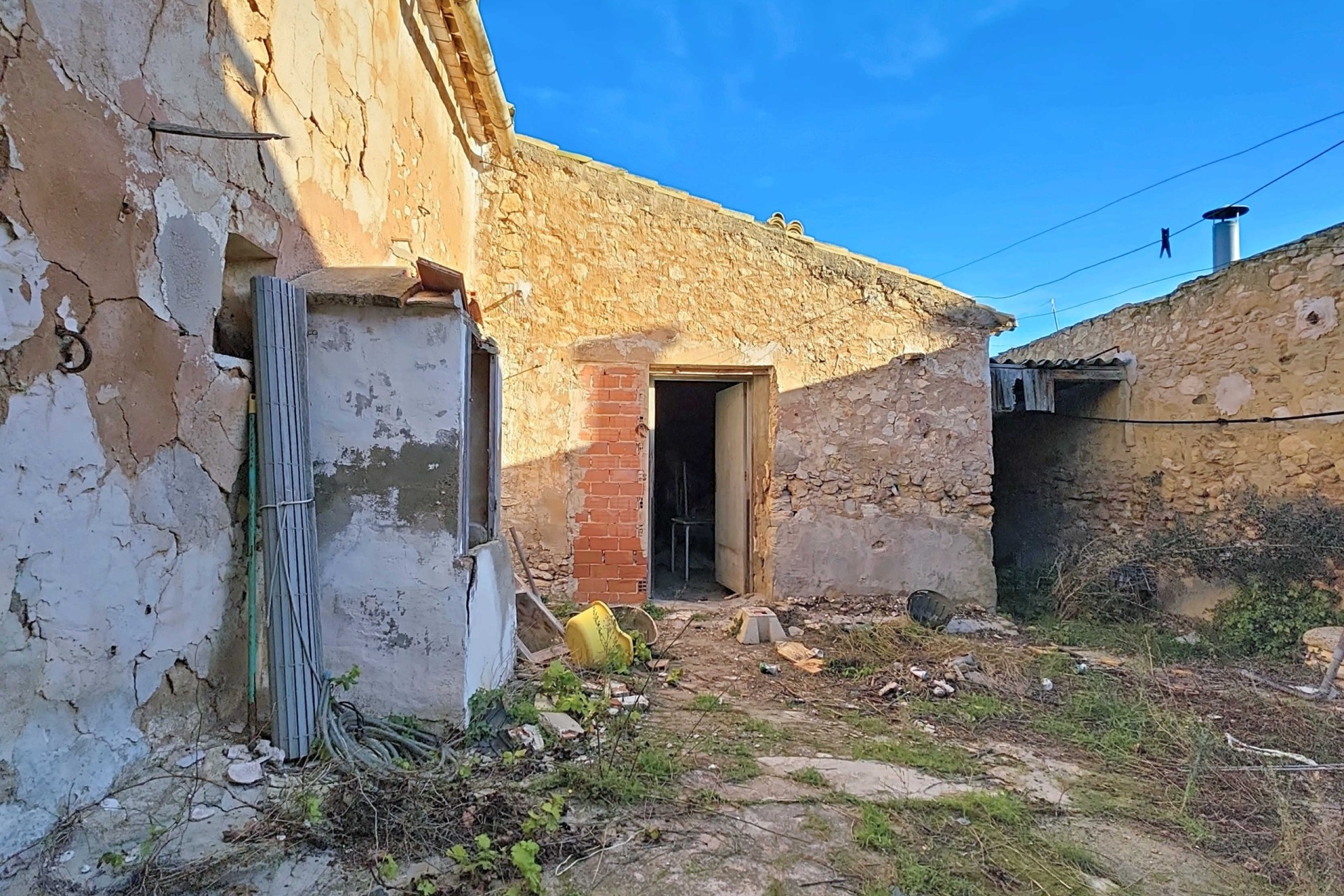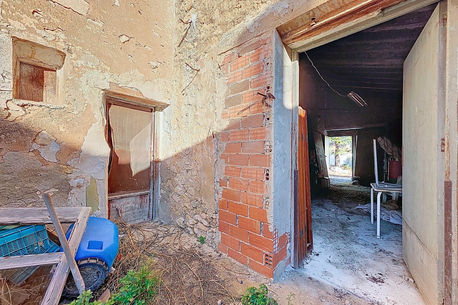 Te renoveren ruime landelijk gelegen woning met garage en patio in Torre del Rico met als bonus een extra grondstuk vol met olijfbomen.De woning – begane grond garage:De woning kan geheel naar eigen wens worden ingericht maar op dit moment bevinden zich op de begane grond een aantal ruimten die dienst kunnen doen als: bij de entree een slaapkamer, een woonkamer met grote haard, een aangrenzende kamer als bijkeuken, een slaapkamer met toegang tot de patio, de keuken met aangrenzend badkamer. Ook vanuit de keuken is er toegang tot de zeer ruime patio. Er is voldoende ruimte voor het plaatsen van bijvoorbeeld een buitenkeuken en/of jacuzzi. Via de patio is er toegang tot een kamer die nu als opslagruimte wordt gebruikt en er is toegang tot de enorme garage/workshop. Deze heeft ook een toegang vanaf de achterzijde. Tenslotte is er vanaf de achterzijde nog een toegangsdeur die uitkomt op de patio.De woning – eerste verdieping:Op de verdieping bevinden zich nog vier slaapkamers. Een van de slaapkamers heeft een aangrenzende bergruimte en er is nog een bergruimte naast de trap. Bonus:De woning wordt verkocht inclusief een vlakbij gelegen ruim grondstuk (2.131 m²) voorzien van olijfbomen.Voorzieningen:De woning is aangesloten op elektriciteit, water en riolering.Ligging:De woning ligt in een klein gehucht nabij Torre del Rico en Canada del Trigo. De grotere gemeenten , Pinoso en Jumilla liggen vlakbij. Het is een prachtige landelijke omgeving waar de Spaanse sfeer nog zichtbaar is.In zowel Pinoso als Jumilla zijn alle dagelijkse voorzieningen beschikbaar, waaronder supermarkten, scholen, een medisch centrum en sportfaciliteiten, evenals een uitgebreid aanbod aan restaurants. Er zijn vele wandel-, hiking- en fietsroutes en de omgeving heeft veel amandel-, olijf- en wijngaarden. Dat alles in een heerlijk mediterraan klimaat. Zowel de luchthavens van Alicante en Murcia als de stranden zijn binnen een uur te bereiken. Neem vandaag nog contact met ons op voor een bezichtiging!Deze woning is exclusief in de verkoop, dit betekent dat alle documenten vooraf zijn gecontroleerd en alles in orde is of in orde gebracht kan worden.