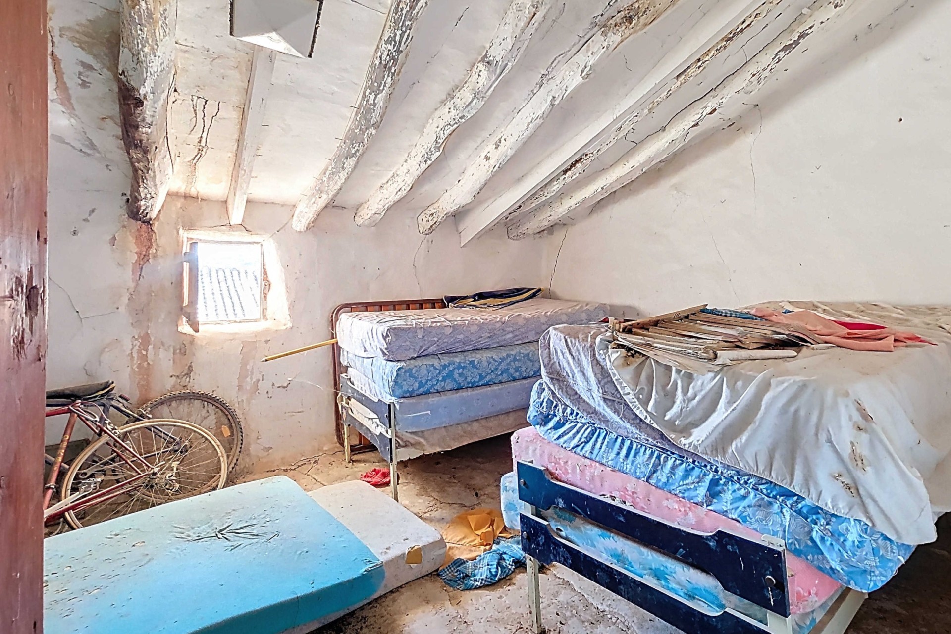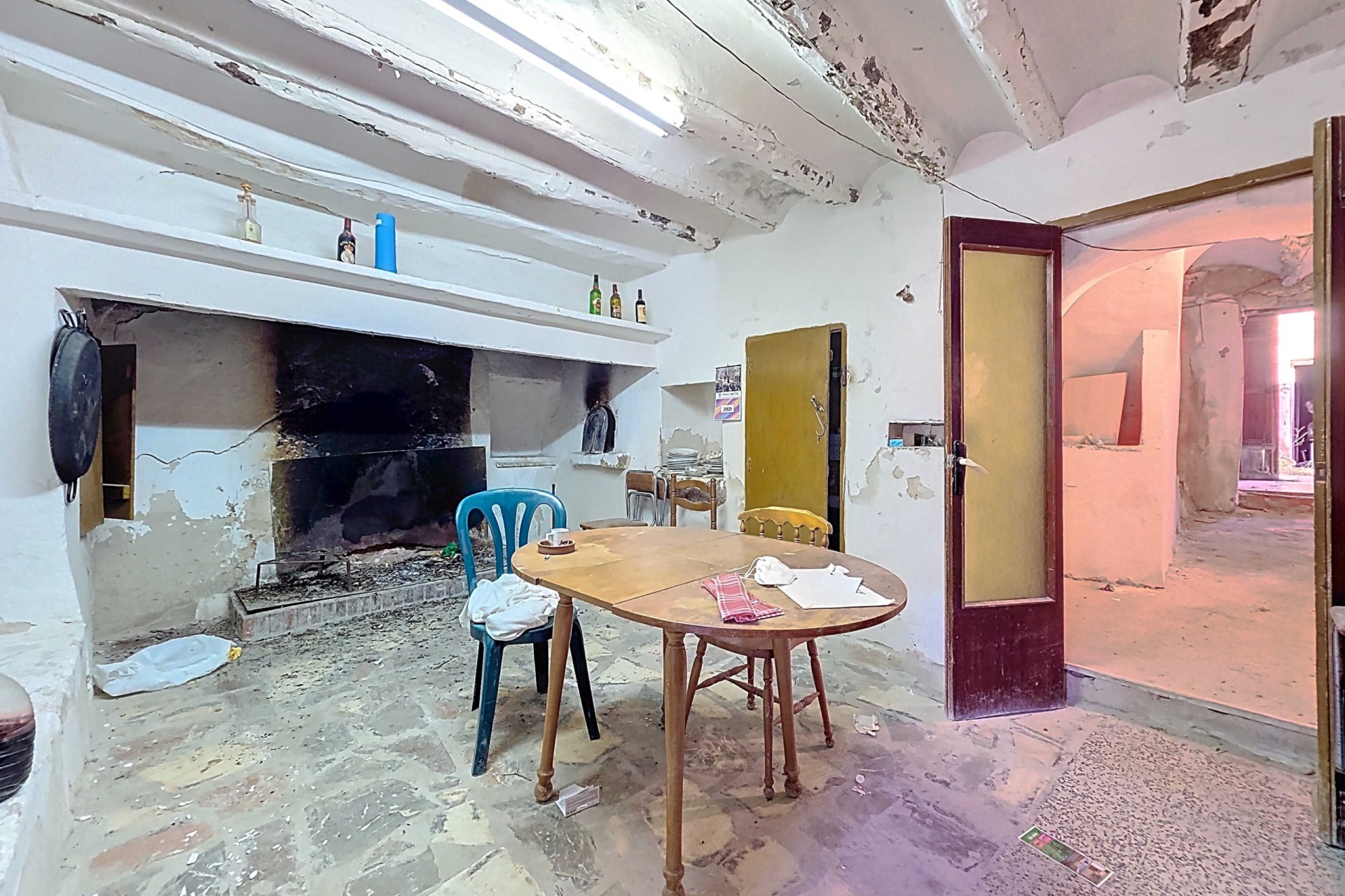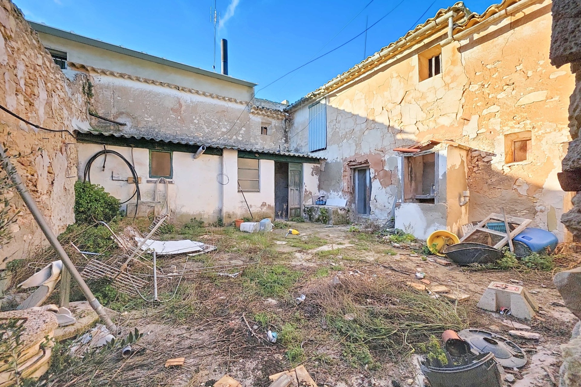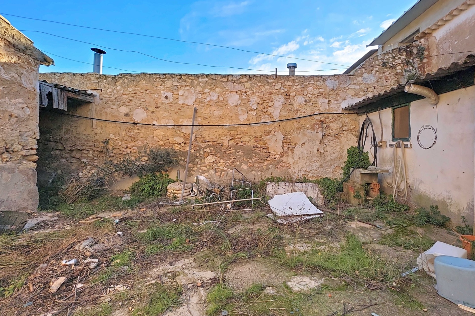 Te renoveren ruime landelijk gelegen woning met garage en patio in Torre del Rico met als bonus een extra grondstuk vol met olijfbomen.De woning – begane grond garage:De woning kan geheel naar eigen wens worden ingericht maar op dit moment bevinden zich op de begane grond een aantal ruimten die dienst kunnen doen als: bij de entree een slaapkamer, een woonkamer met grote haard, een aangrenzende kamer als bijkeuken, een slaapkamer met toegang tot de patio, de keuken met aangrenzend badkamer. Ook vanuit de keuken is er toegang tot de zeer ruime patio. Er is voldoende ruimte voor het plaatsen van bijvoorbeeld een buitenkeuken en/of jacuzzi. Via de patio is er toegang tot een kamer die nu als opslagruimte wordt gebruikt en er is toegang tot de enorme garage/workshop. Deze heeft ook een toegang vanaf de achterzijde. Tenslotte is er vanaf de achterzijde nog een toegangsdeur die uitkomt op de patio.De woning – eerste verdieping:Op de verdieping bevinden zich nog vier slaapkamers. Een van de slaapkamers heeft een aangrenzende bergruimte en er is nog een bergruimte naast de trap. Bonus:De woning wordt verkocht inclusief een vlakbij gelegen ruim grondstuk (2.131 m²) voorzien van olijfbomen.Voorzieningen:De woning is aangesloten op elektriciteit, water en riolering.Ligging:De woning ligt in een klein gehucht nabij Torre del Rico en Canada del Trigo. De grotere gemeenten , Pinoso en Jumilla liggen vlakbij. Het is een prachtige landelijke omgeving waar de Spaanse sfeer nog zichtbaar is.In zowel Pinoso als Jumilla zijn alle dagelijkse voorzieningen beschikbaar, waaronder supermarkten, scholen, een medisch centrum en sportfaciliteiten, evenals een uitgebreid aanbod aan restaurants. Er zijn vele wandel-, hiking- en fietsroutes en de omgeving heeft veel amandel-, olijf- en wijngaarden. Dat alles in een heerlijk mediterraan klimaat. Zowel de luchthavens van Alicante en Murcia als de stranden zijn binnen een uur te bereiken. Neem vandaag nog contact met ons op voor een bezichtiging!Deze woning is exclusief in de verkoop, dit betekent dat alle documenten vooraf zijn gecontroleerd en alles in orde is of in orde gebracht kan worden.