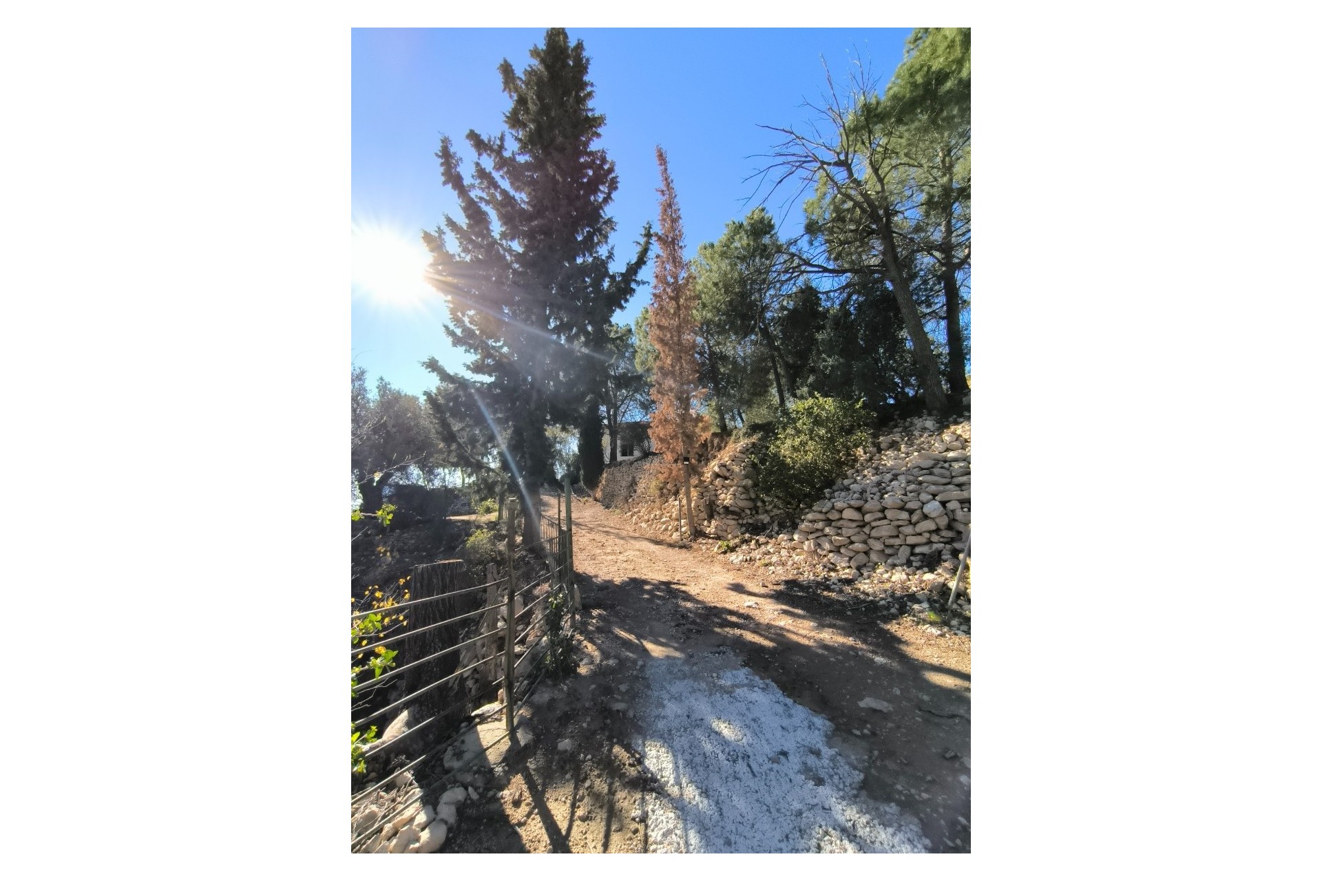 Het perceel, wat vrijwel geheel omheind is, ligt verdeeld over verschillende levels, hierdoor behoud je zelfs bij het openen van een camperplaats toch nog je privacy. Er staan o.a. amandelbomen, olijfbomen, granaatappelbomen, mandarijnenbomen en een citroenboom, maar er is ruimte genoeg om dit assortiment uit te breiden.
