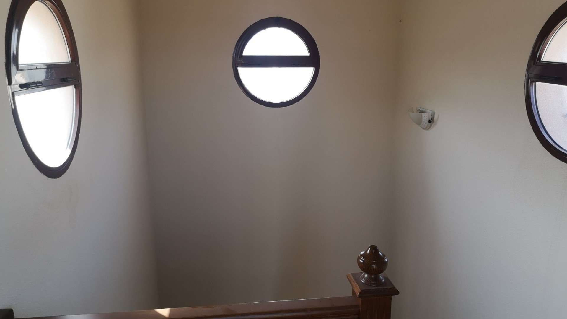 Het woongedeelte van het interieur van het pand is verdeeld over twee verdiepingen, bestaande uit 3 slaapkamers, 2 badkamers (een familiebad en een met douche), aparte keuken met grote bijkeuken/wasruimte en ruime woon- en eetkamer. Directe toegang via openslaande deuren leidt vanuit de woonkamer naar de achterporch. Beide slaapkamers op de bovenverdieping hebben een terras en de trap leidt naar het zonnige solarium.